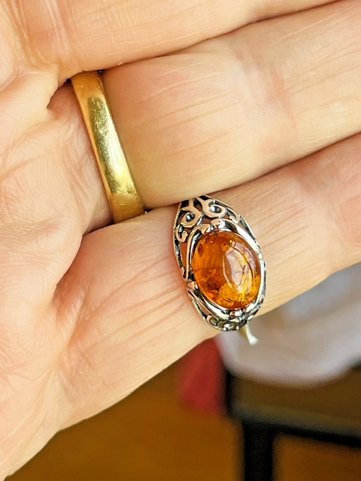 Genuine Baltic Amber Silver 925 Ring Size 7,0 Butterscotch Vintage Polish