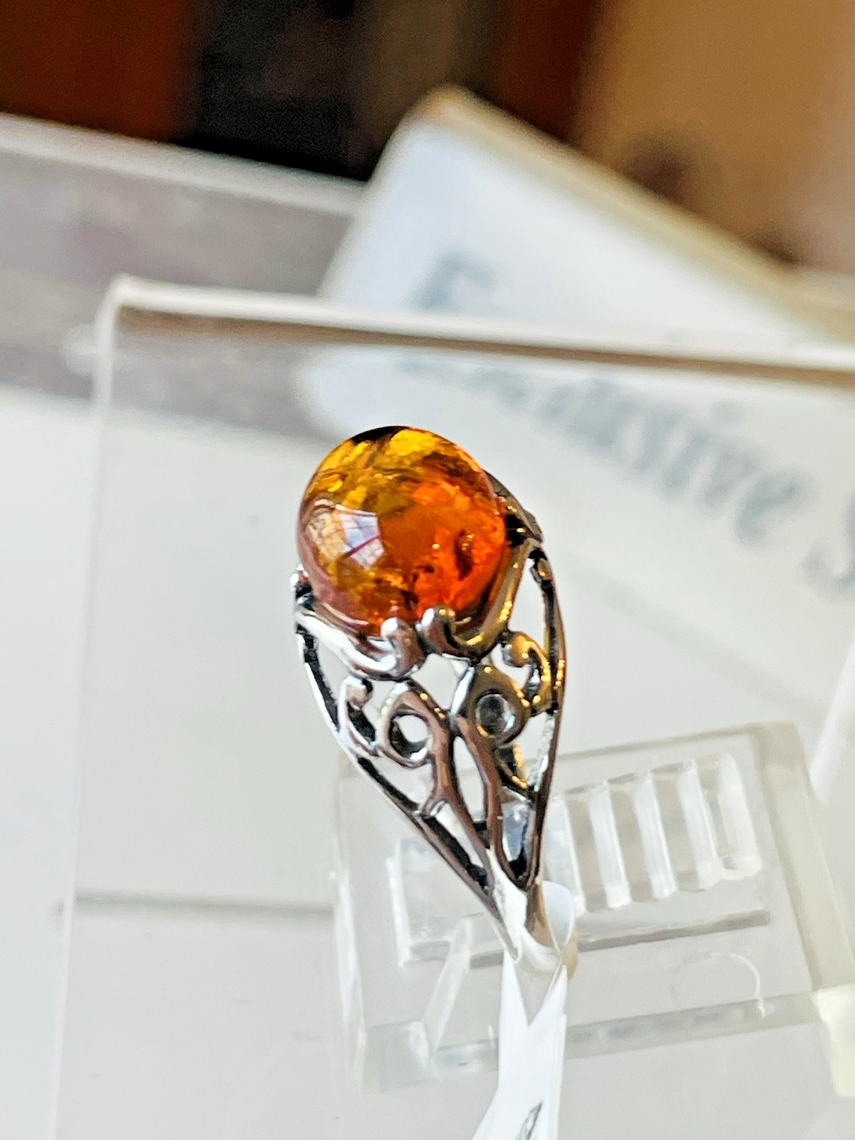 как выглядит Genuine Baltic Amber Silver 925 Ring Size 7,0 Butterscotch Vintage Polish фото