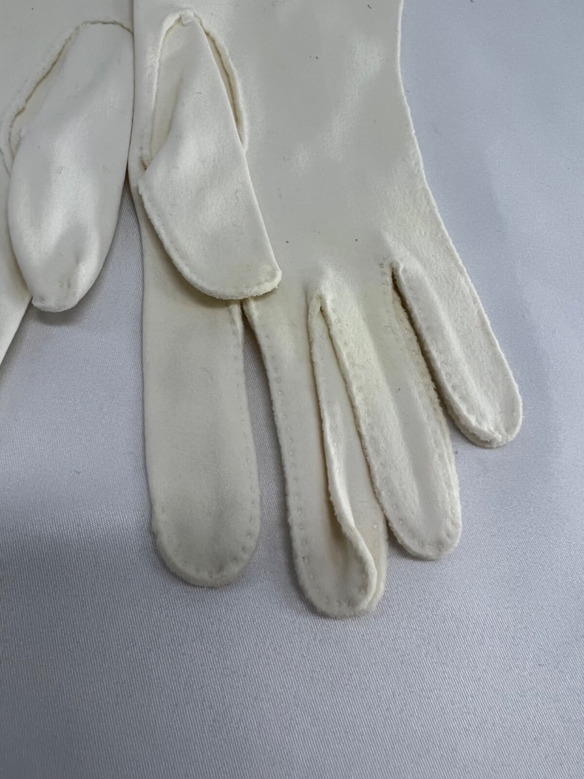 как выглядит Vintage White Cloth Mid Length Gloves Size S Button Trim Perfect Condition фото