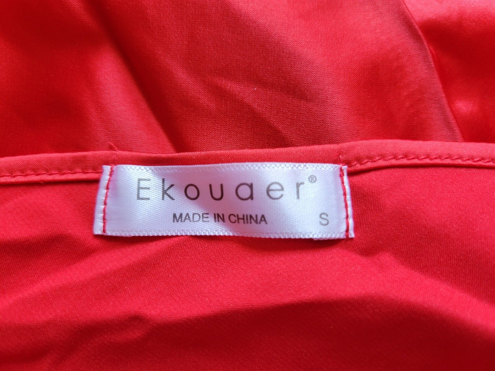 Ekouaer Red Chemise Satin Nightgown Size Small Eyelash Lace Adjustable Straps