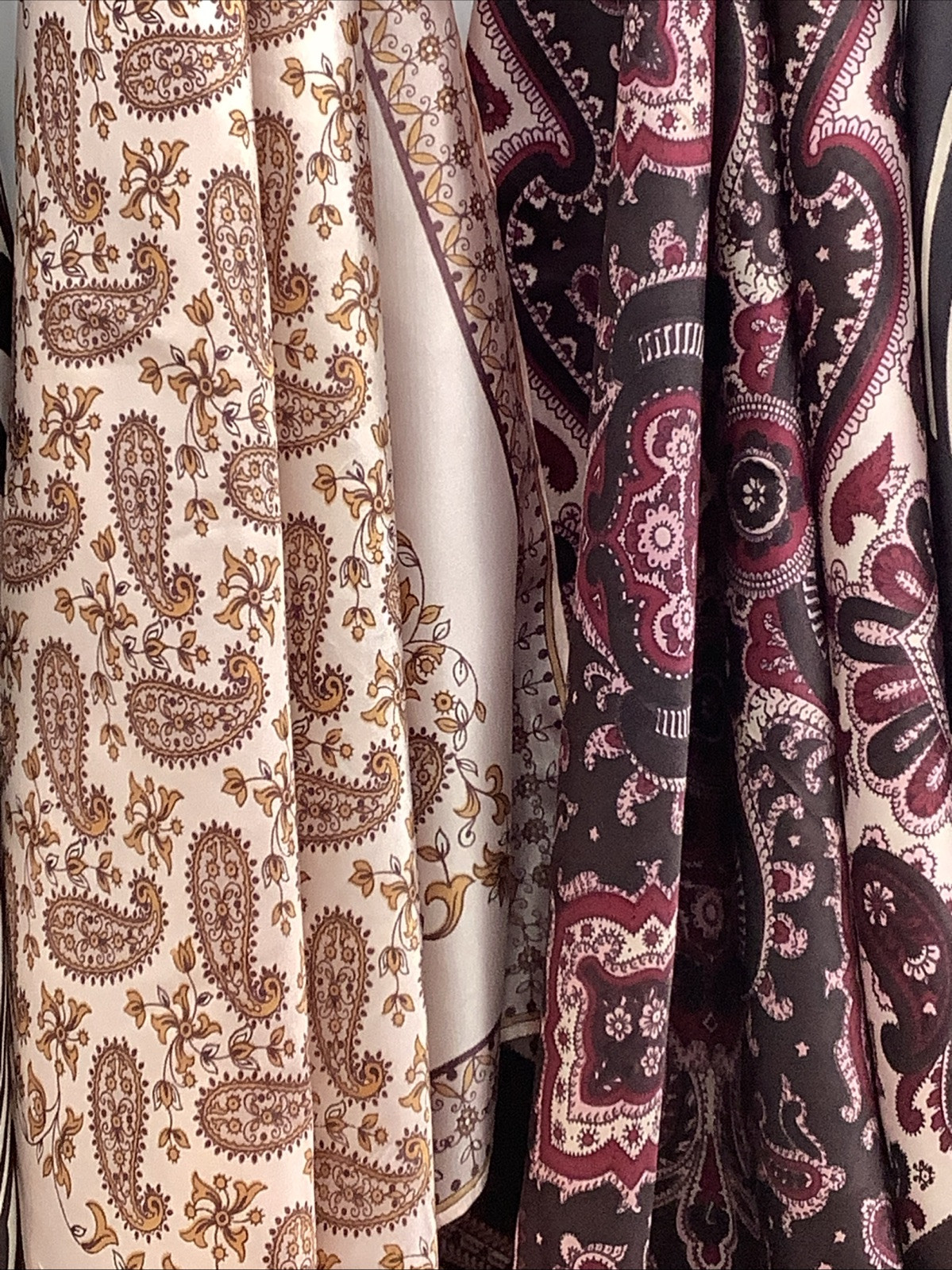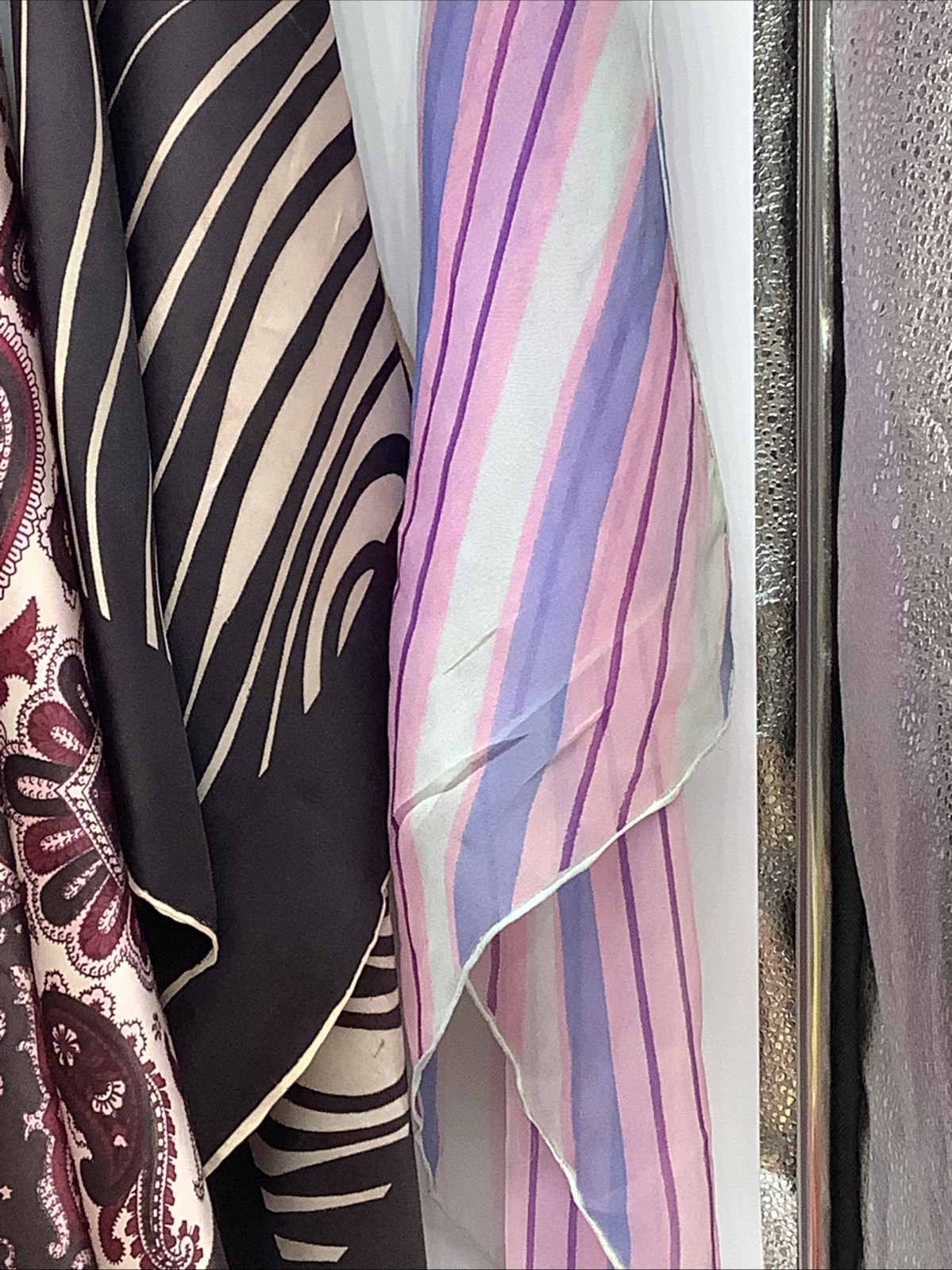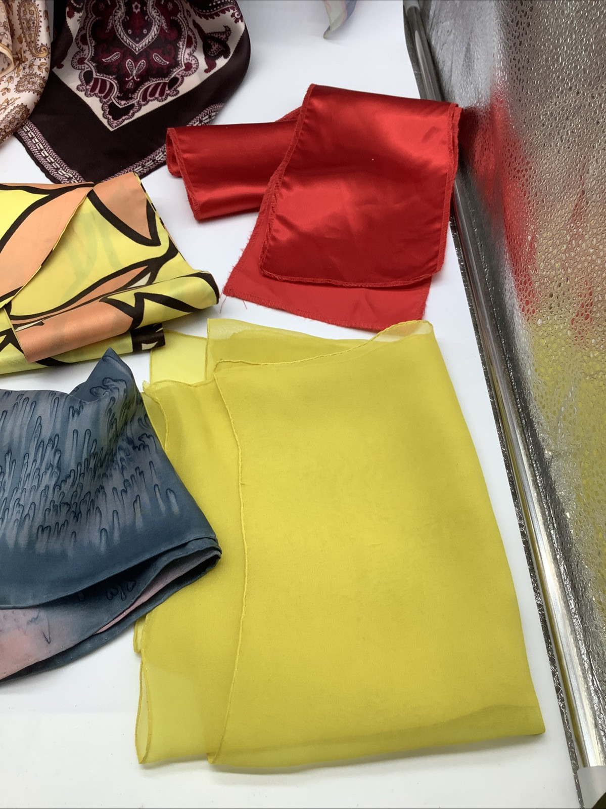 Lot Of 12 Vintage Scarves Various Materials, Colors and Sizes