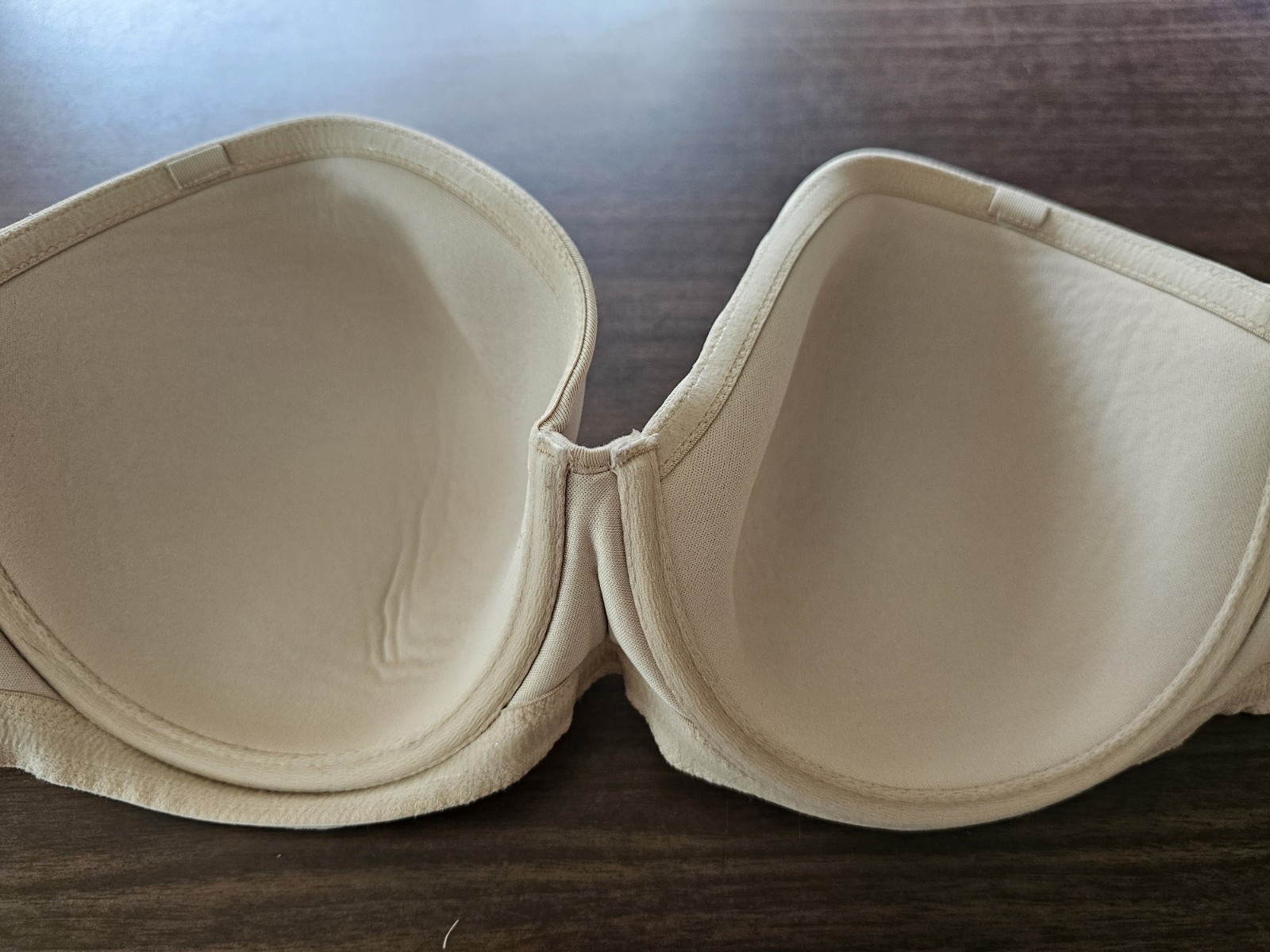 как выглядит Wacoal Red Carpet Strapless Full Busted Underwire Bra size 34DDD Beige 854119 фото