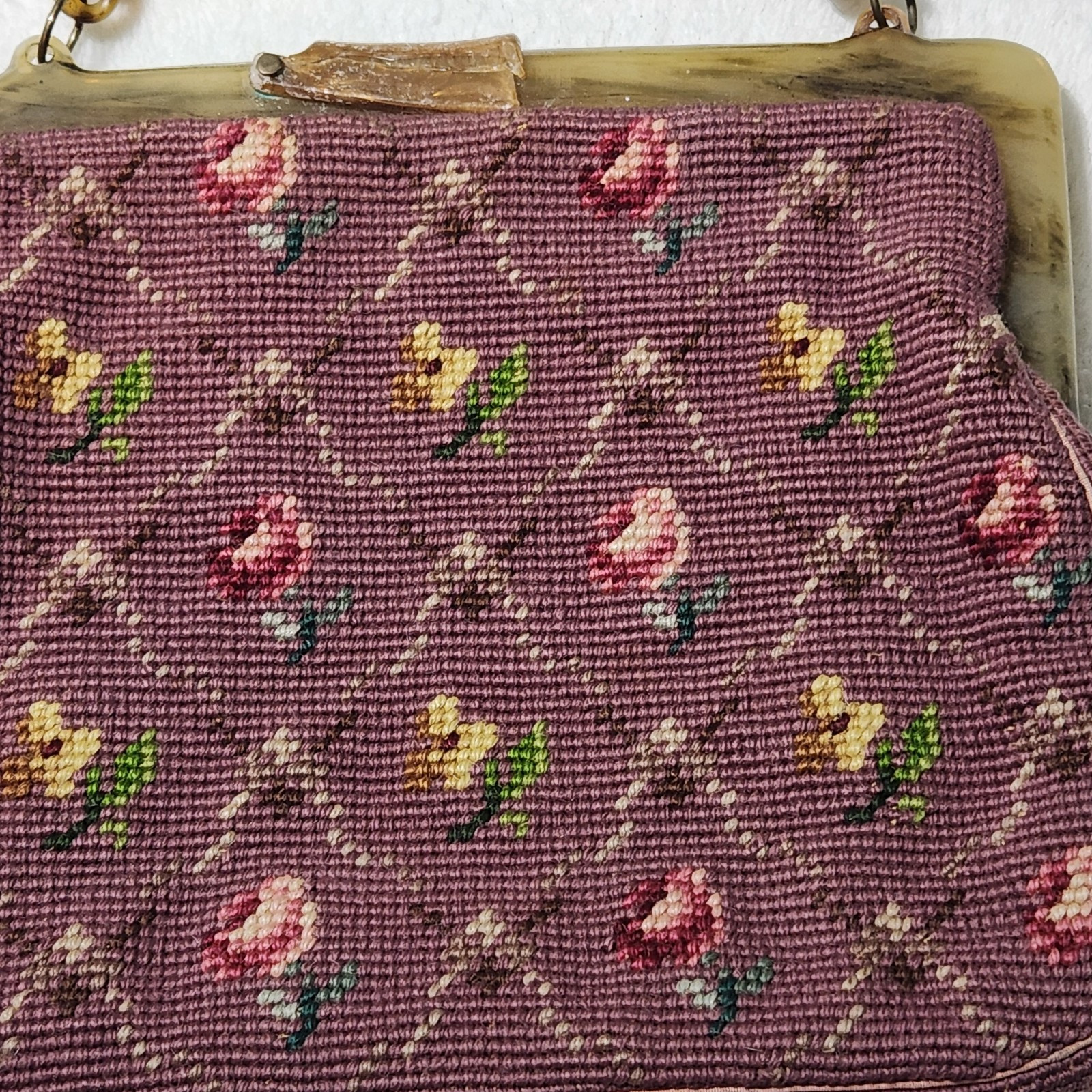 Vintage Embroidered Floral Pattern Needlepoint Purse handbag