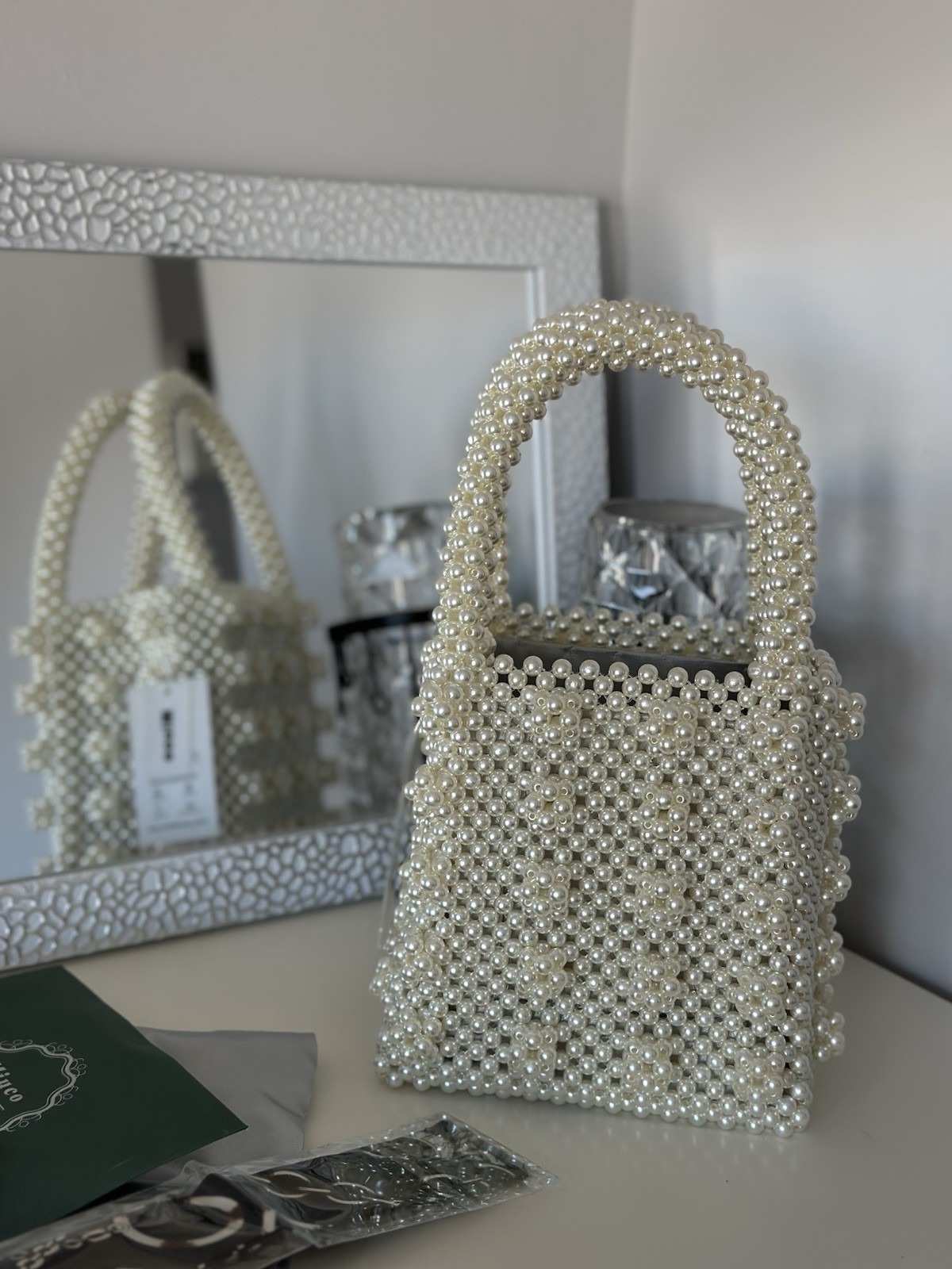 как выглядит Pearl Beaded Tote Bag Pearl Evening Clutch Bead Handbag Bridesmaid Accessories фото