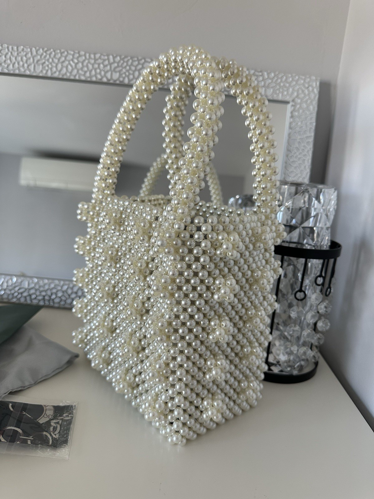 Pearl Beaded Tote Bag Pearl Evening Clutch Bead Handbag Bridesmaid Accessories