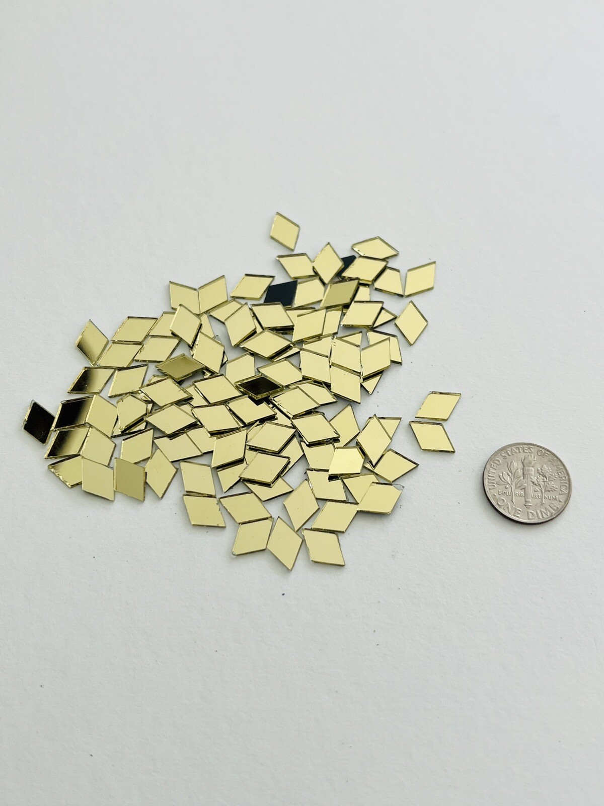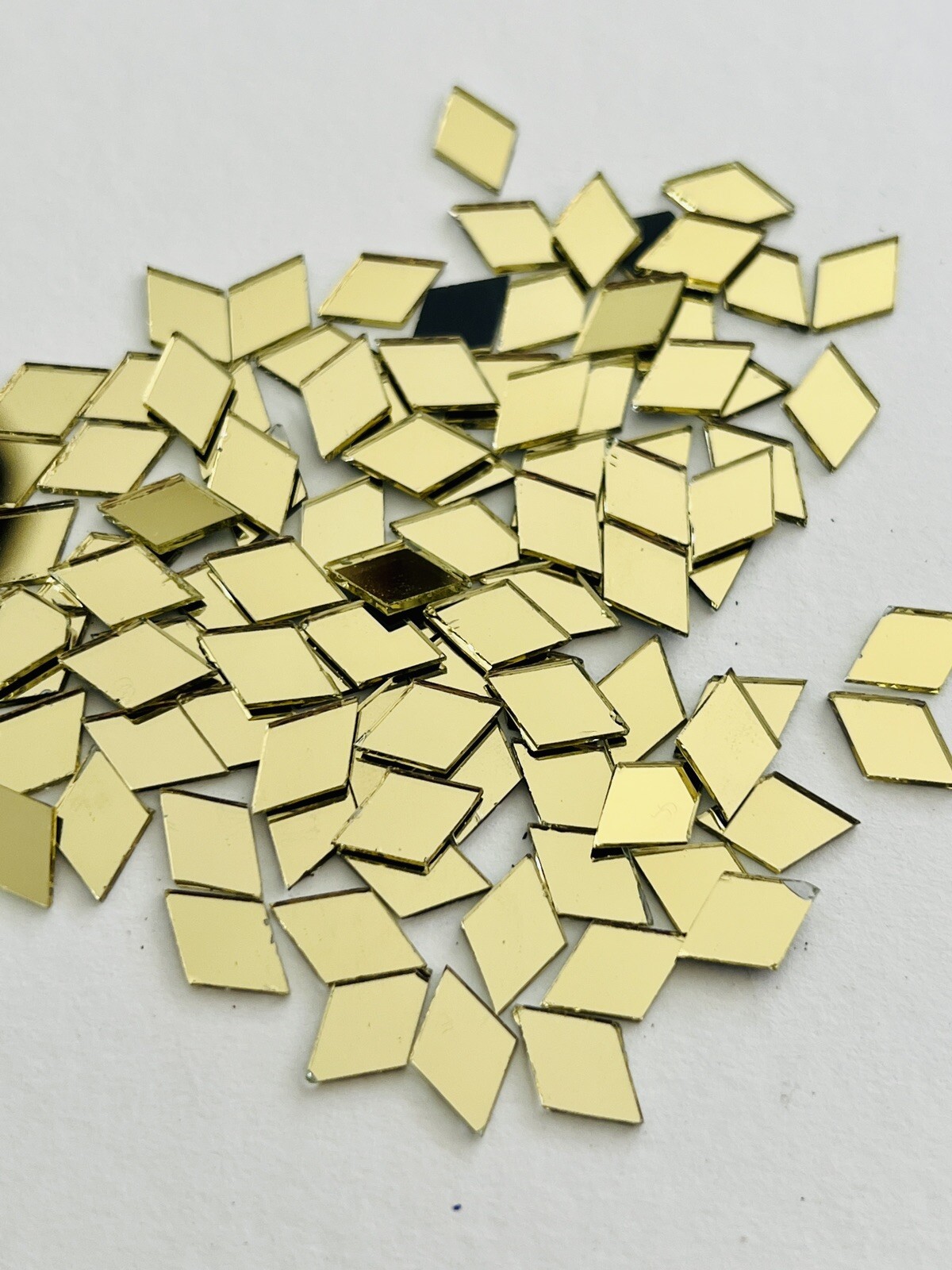 Rhombus Gold glass mirror tiles 7x11 mm , Diamond shape mirrors for art crafts