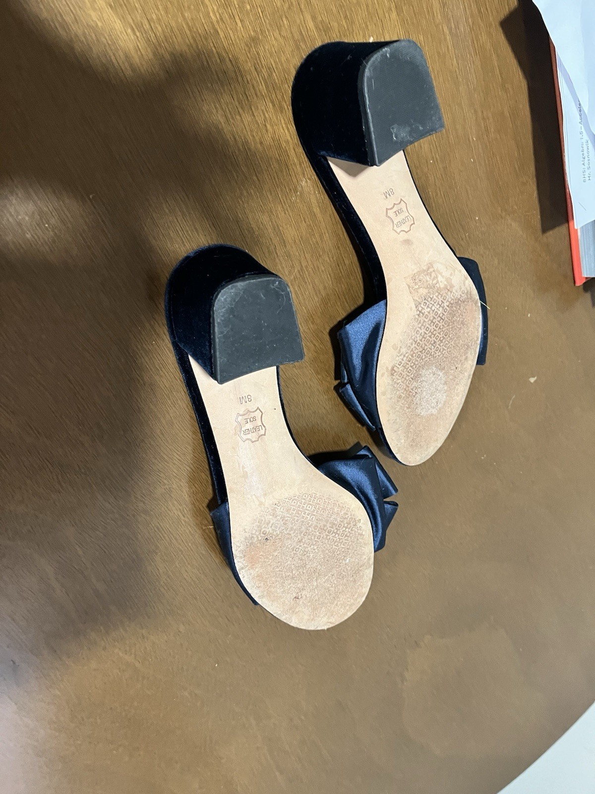 как выглядит Tory Burch Satin Navy Bow Slides Mules Size 8 фото
