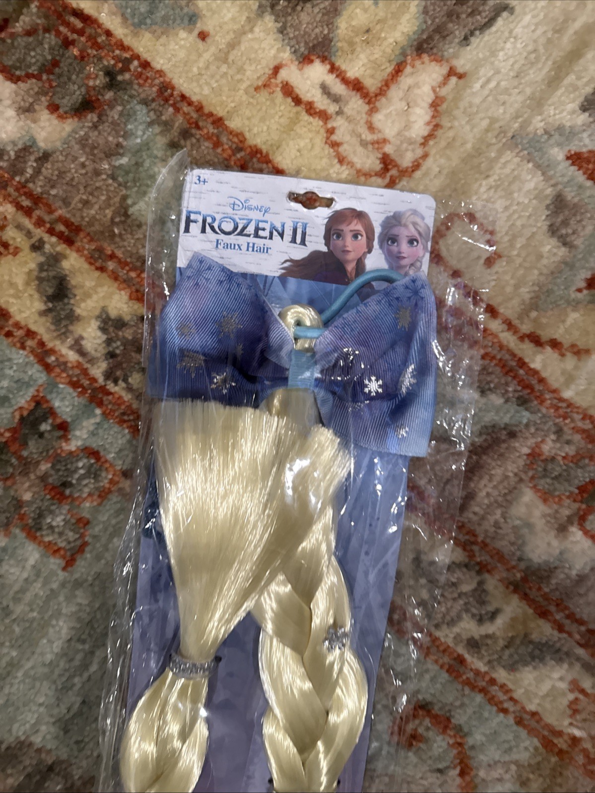 Disney Frozen 2 Elsa Faux Blonde Hair Braid With Blue Snowflake Hair Tie Bow