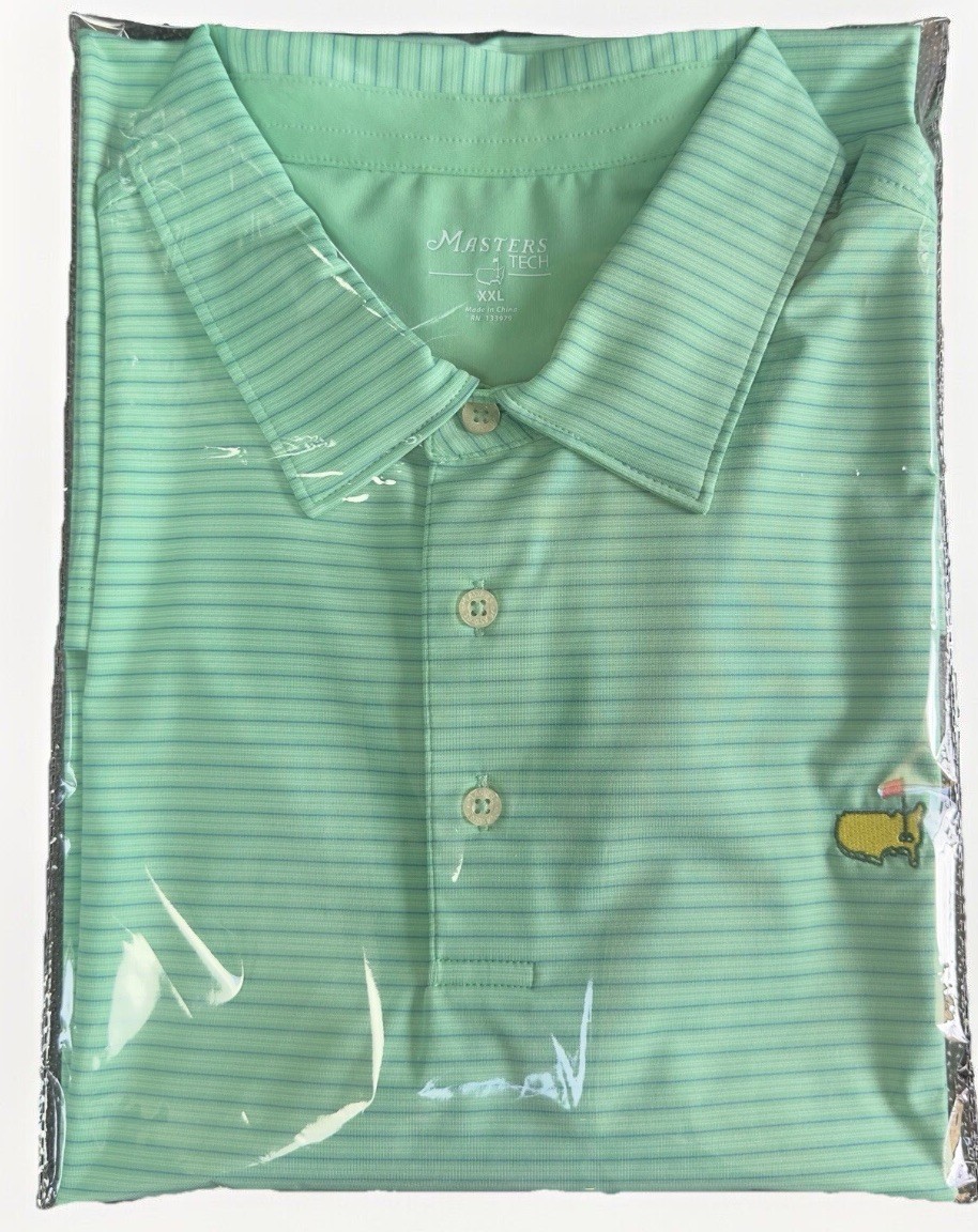Masters Tech Golf Polo XXL Green w/ Blue stripe Moisture Wicking UPF Stretch
