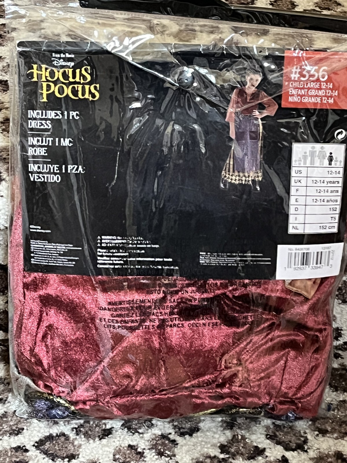 Mary Sanderson Hocus Pocus Witch Halloween Costume Child Large 12-14 - New