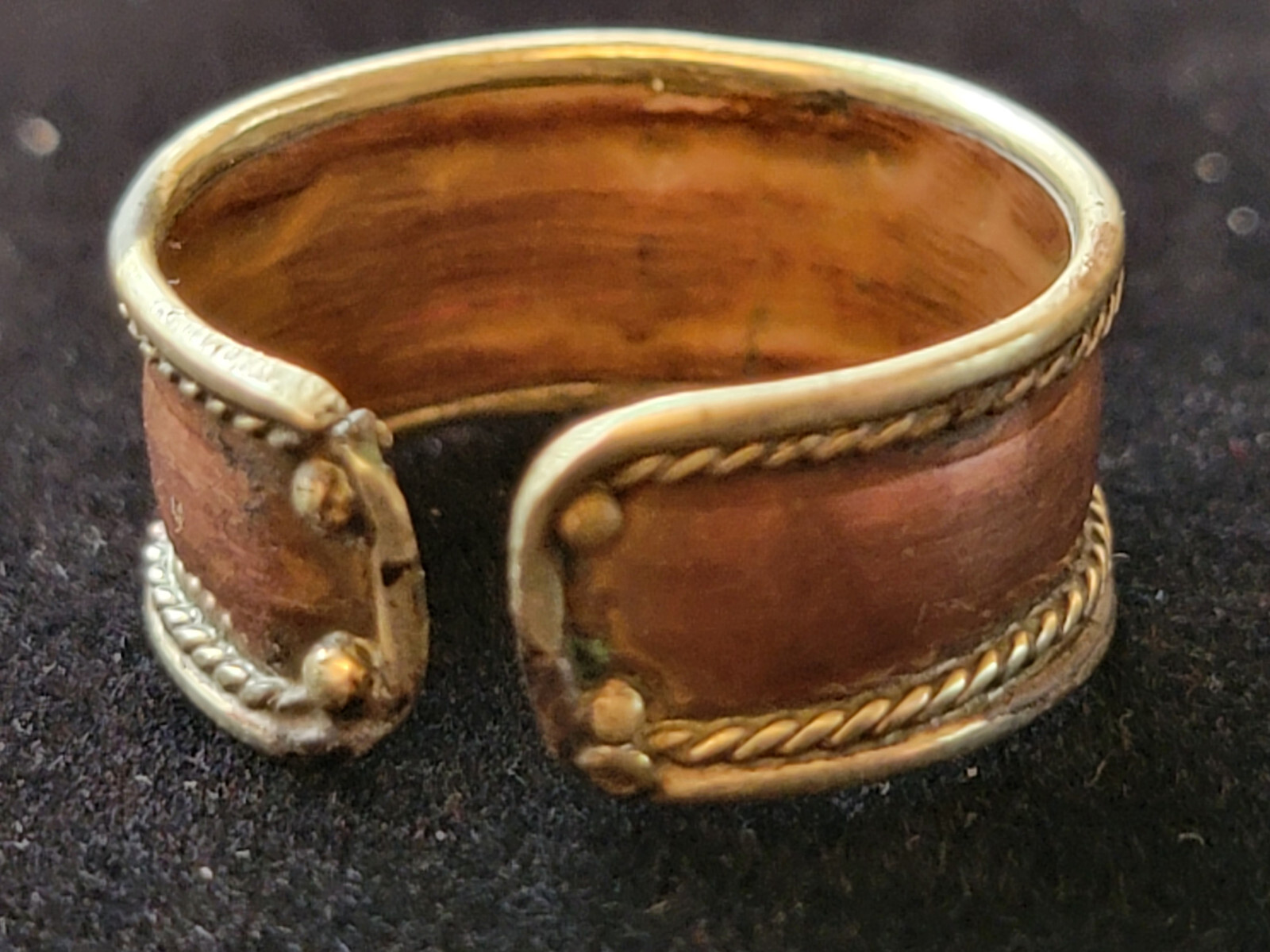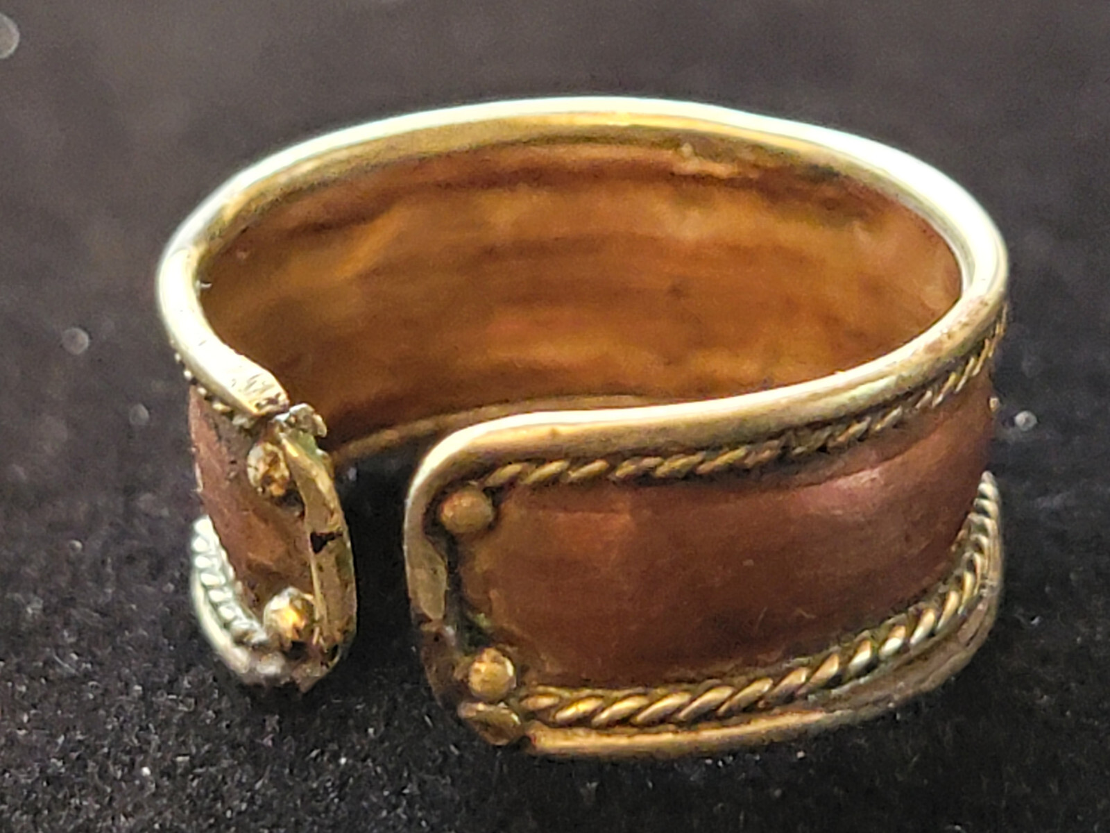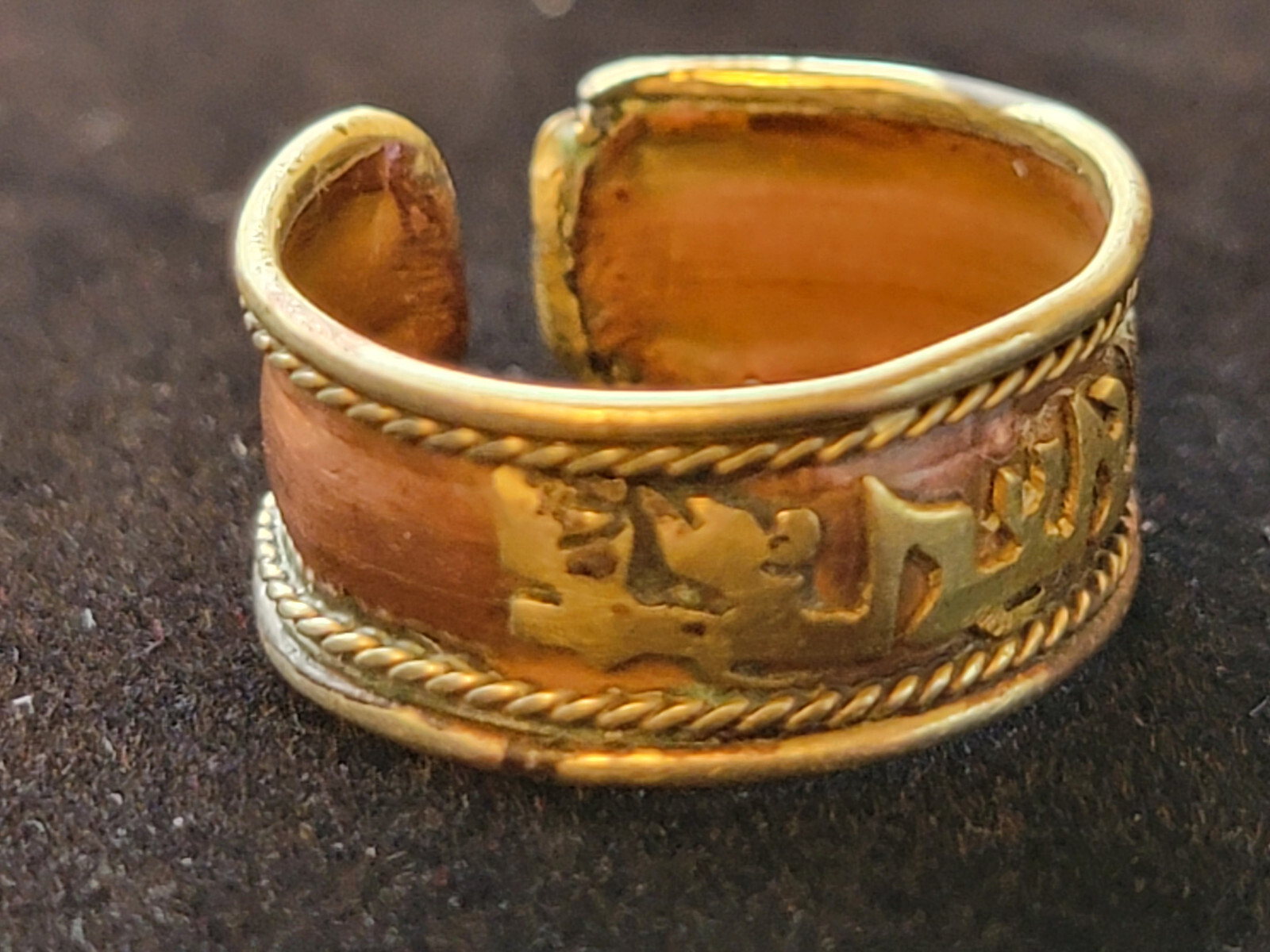• Copper Brass Om Mantra Ring Size 7.5 Vintage Adjustable Spiritual Jewelry