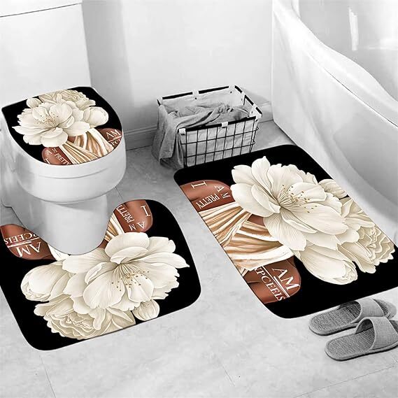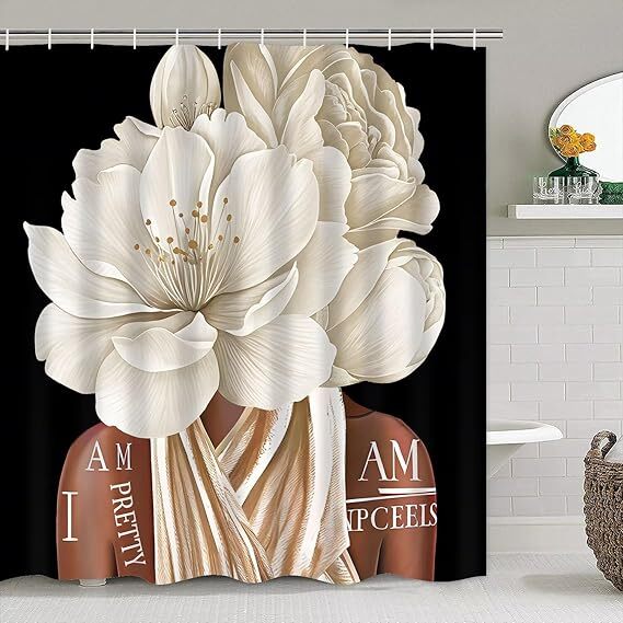 как выглядит 4 Pcs Black Girl Shower Curtain Sets African American Woman White Rose Floral фото
