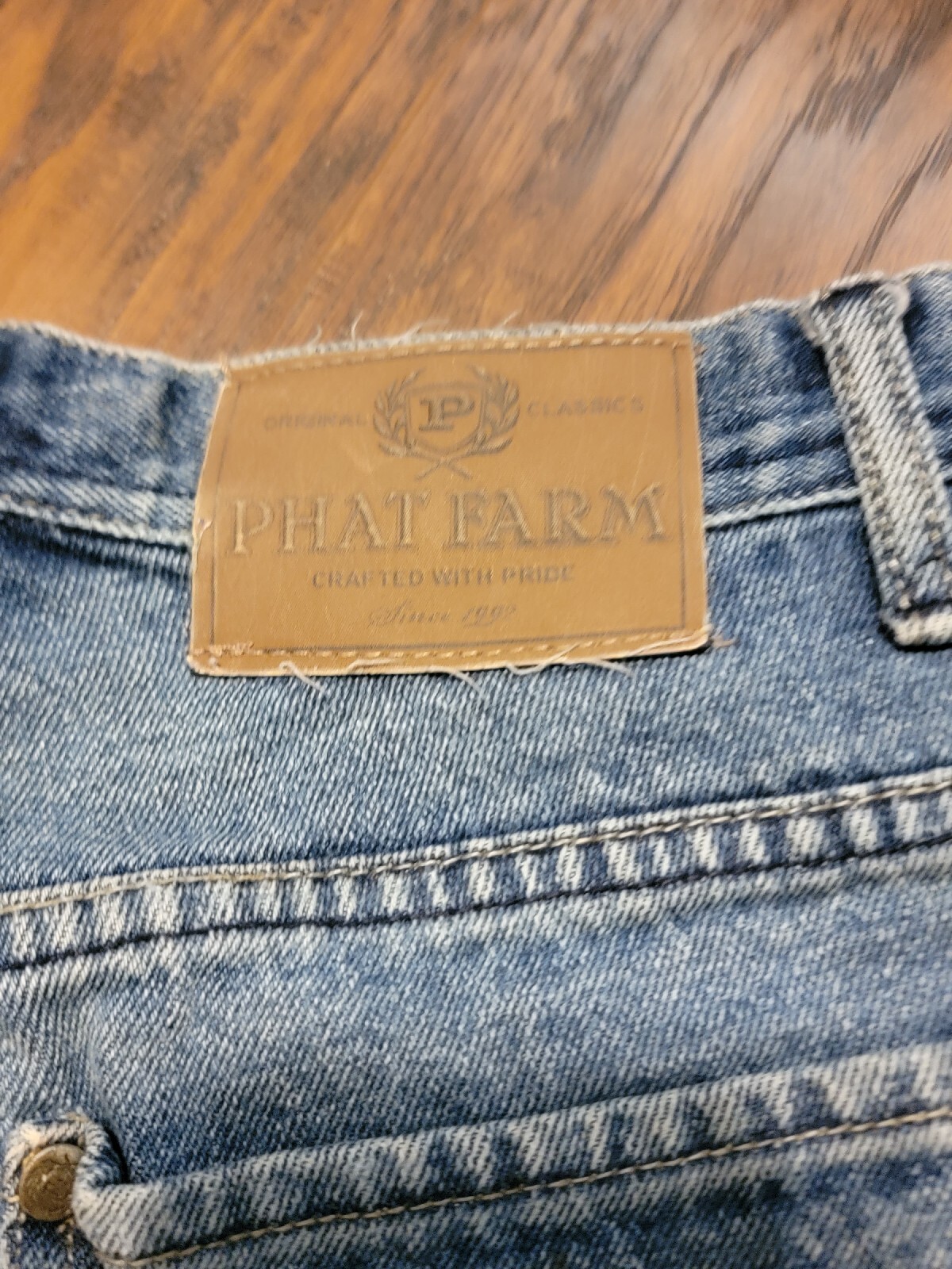 Phat Farms Boys Faded Blue Denim Jeans Shorts Size 16 - Embroidered Rare