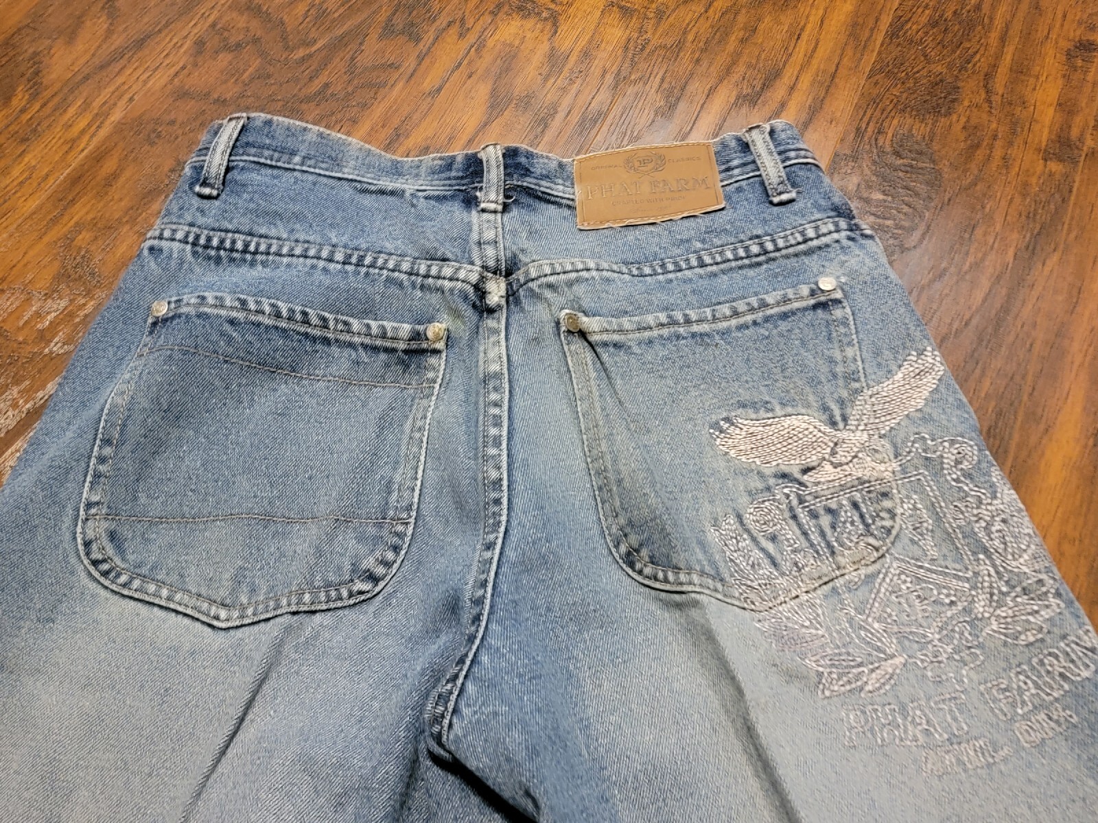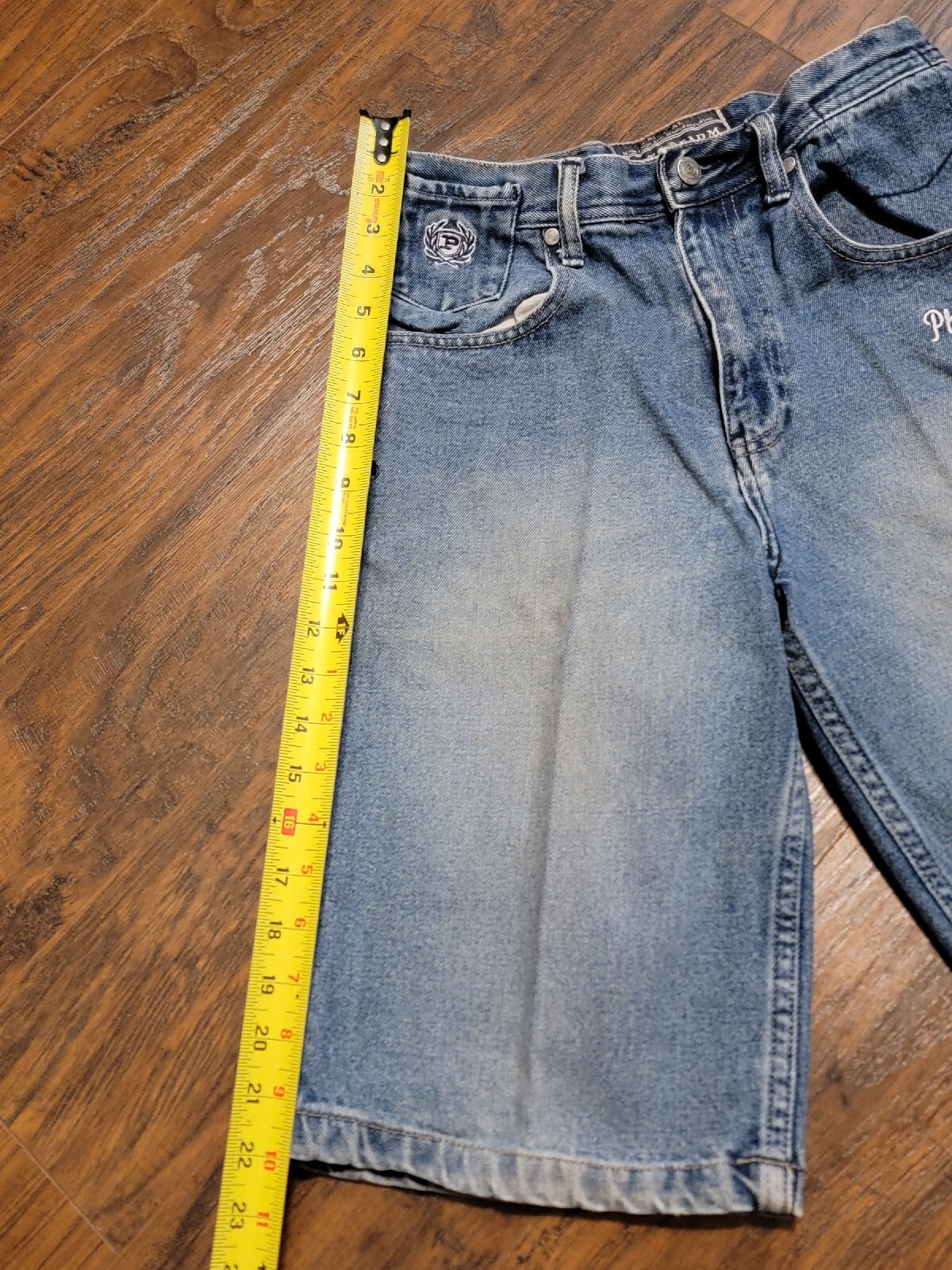 как выглядит Phat Farms Boys Faded Blue Denim Jeans Shorts Size 16 - Embroidered Rare фото