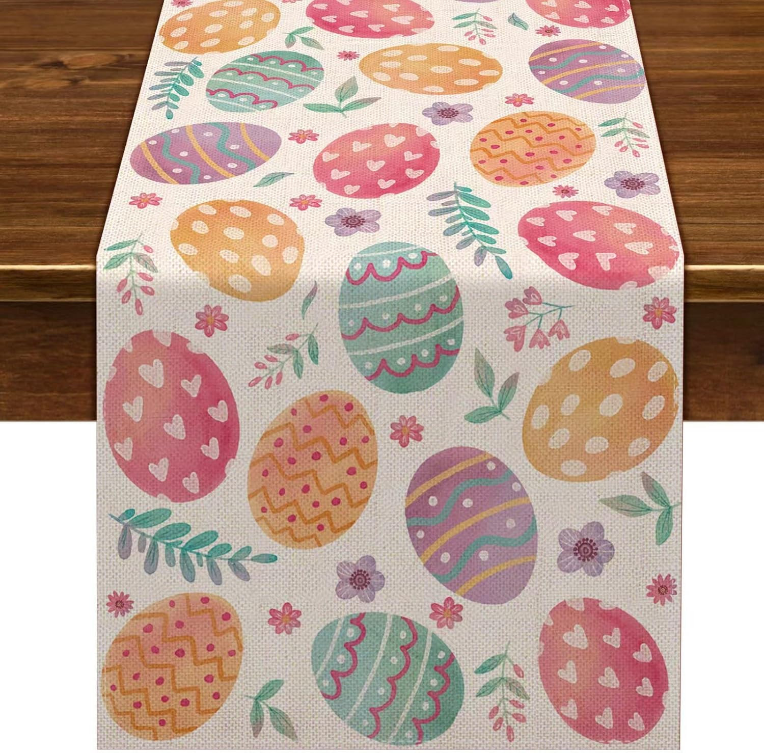 Linen Happy Easter Table Runner Spring Easter Egg Decoration Table Decor 13X72