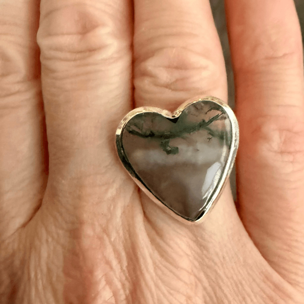 Stunning Heart Agate Sterling Silver Statement Ring Size 6 Large New