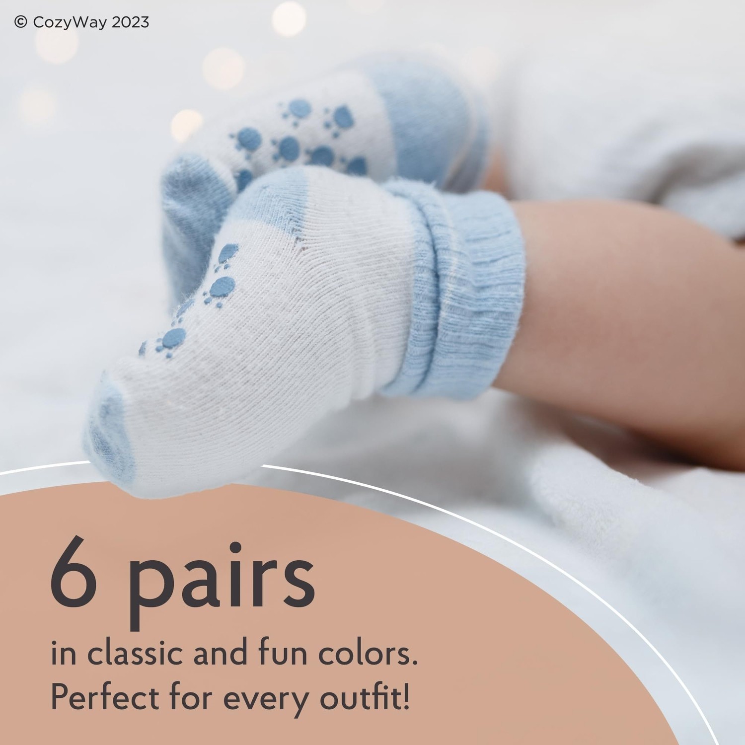 Non-Slip Crew Grip Socks Stripes Dinosaur - 12 pairs, 1-3 Years Old