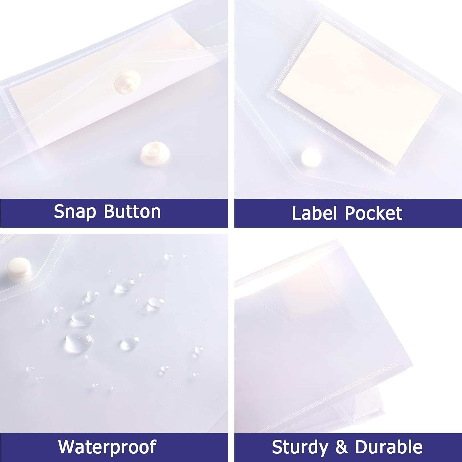 6 Pack Clear Document Folders Plastic 15.55 x 8.73 x 0.52 inches, White