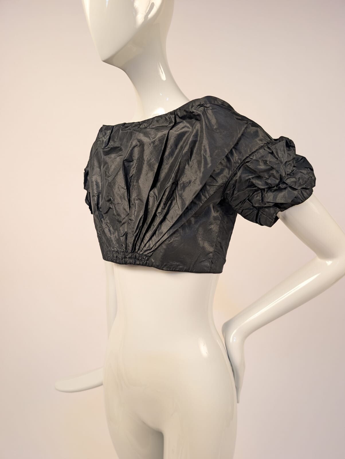как выглядит GOTHIC MID 19TH C 1850 S HAND SEWN BLACK SILK TAFFETA BODICE W PUFF SLEEVES фото