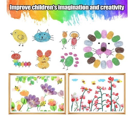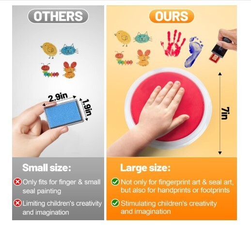 6 Pcs 7 Ink Pads for Kids Handprint Footprint Size Rainbow Stamps Pad, safe
