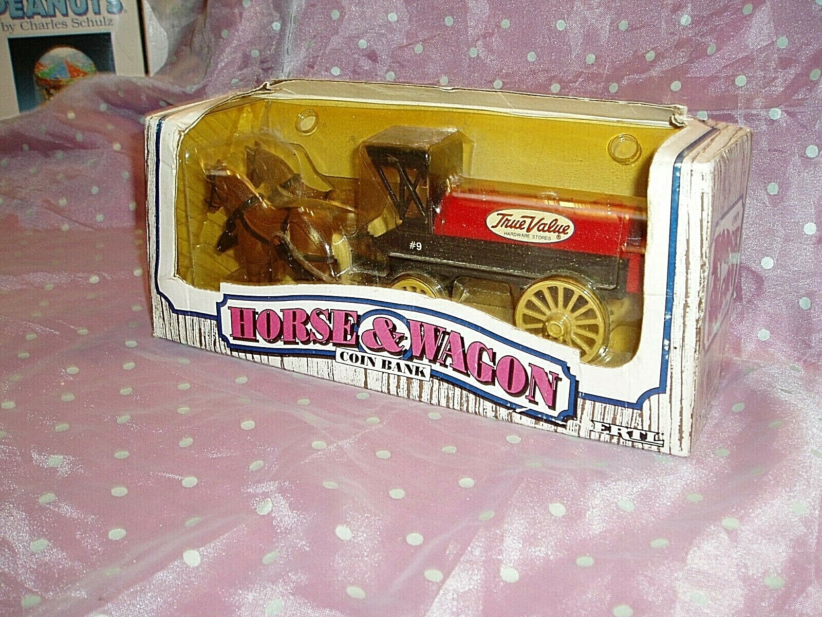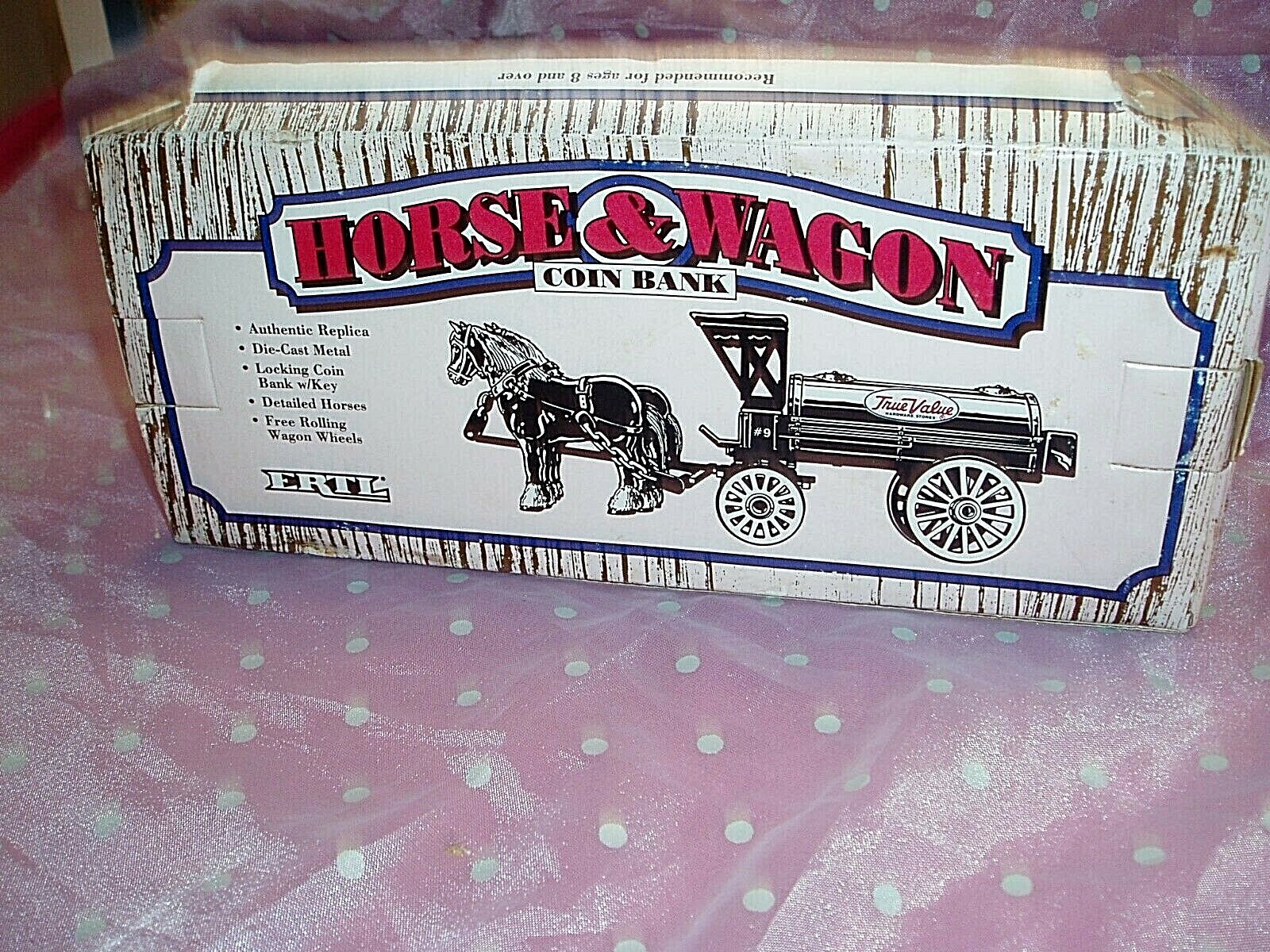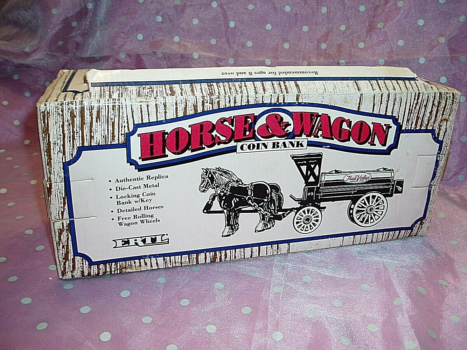 NIB, VTG, ERTL TRUE VALUE HARDWARE STORE HORSE WAGON DIECAST METAL COIN BANK