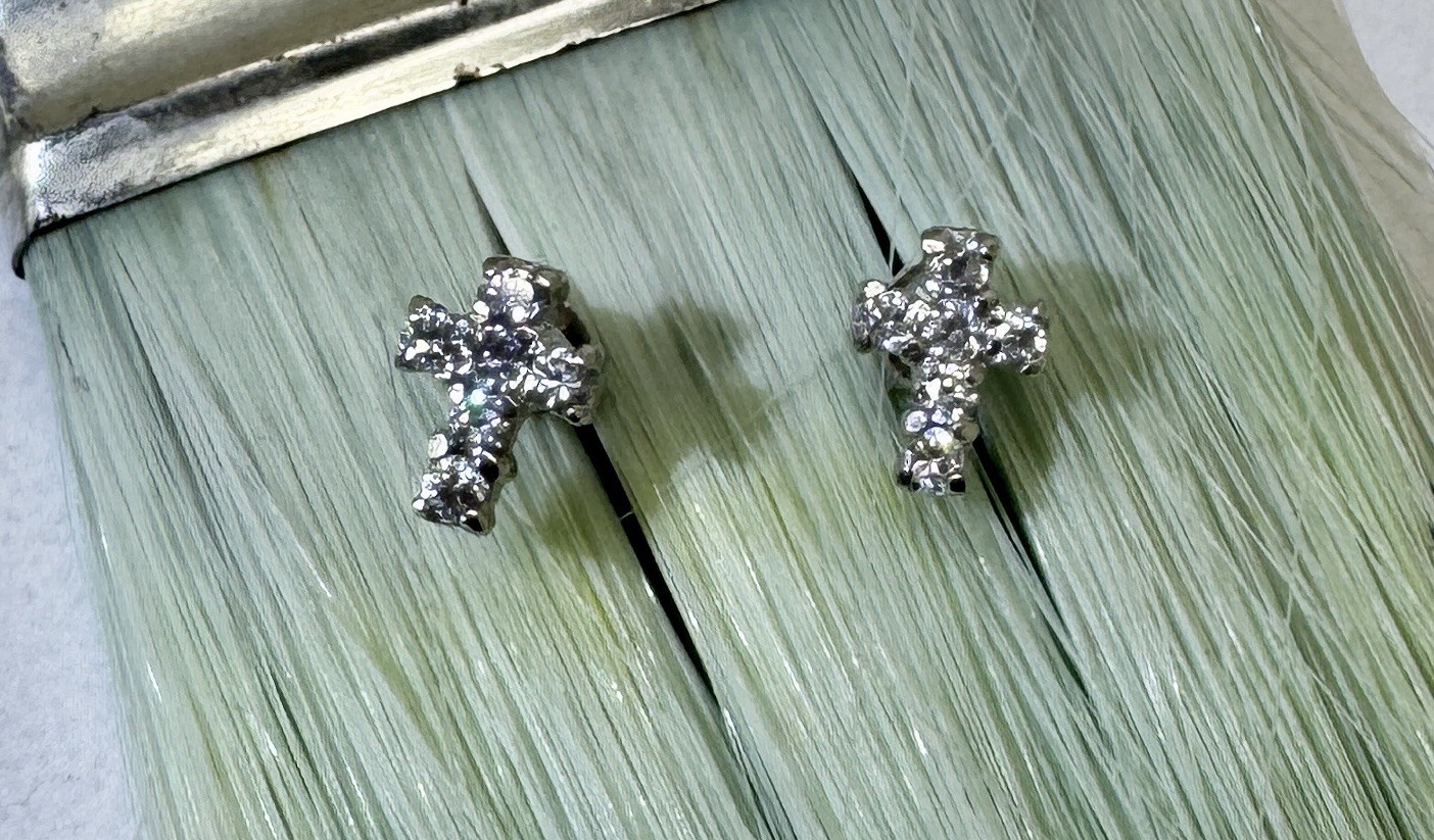 • Sterling Silver Small Cross Earrings 925 Silver White CZ Kid Rodium Plated