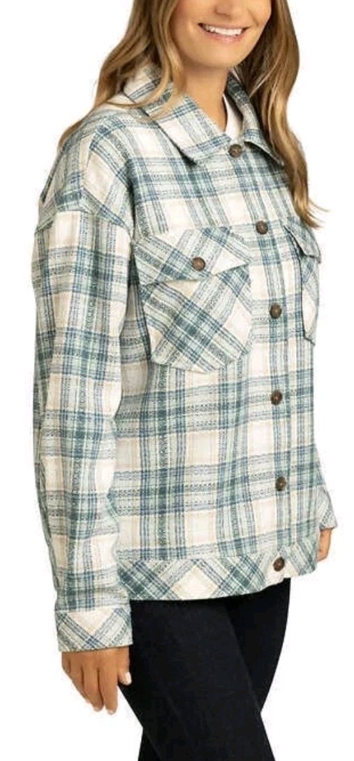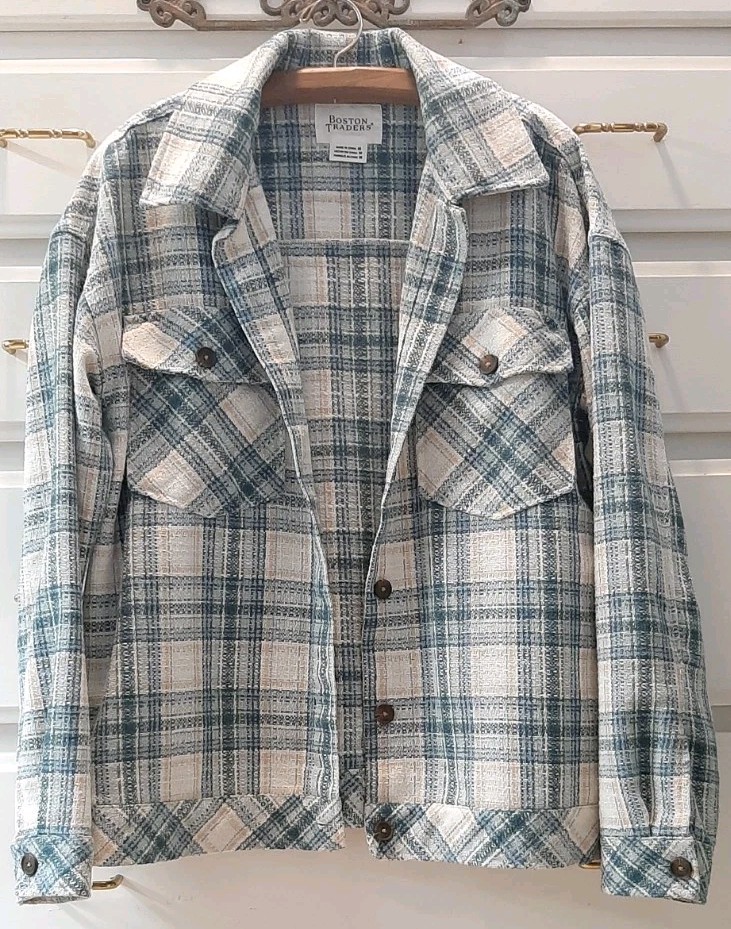 NWOT Boston Traders SzM Plaid Trucker Shacket Flannel Button Down Shirt Jacket