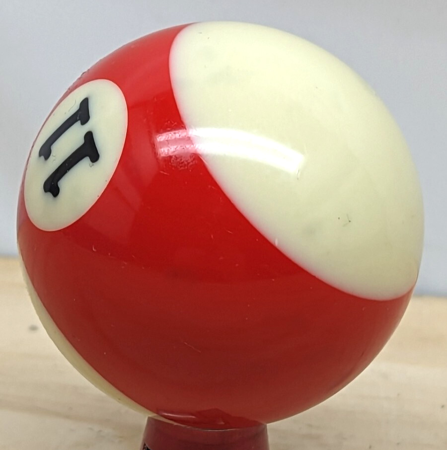 Pool ball 11 ball red and white and black 2.25 diameter