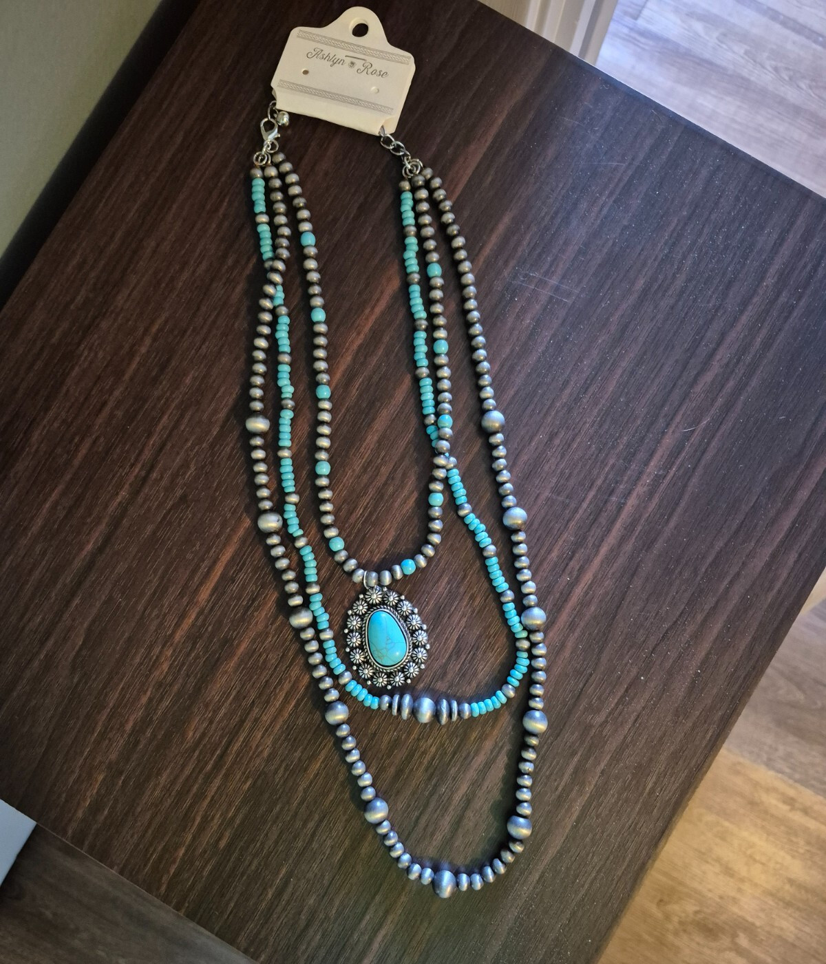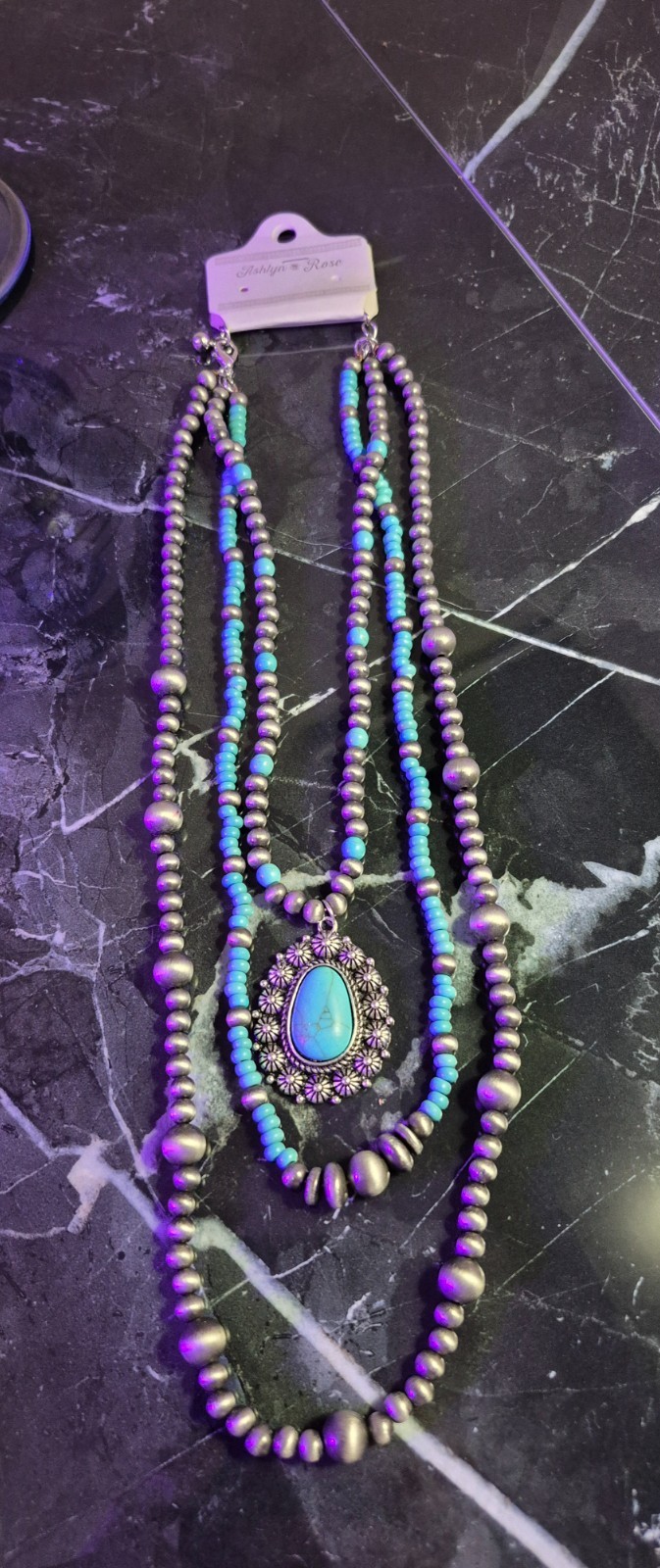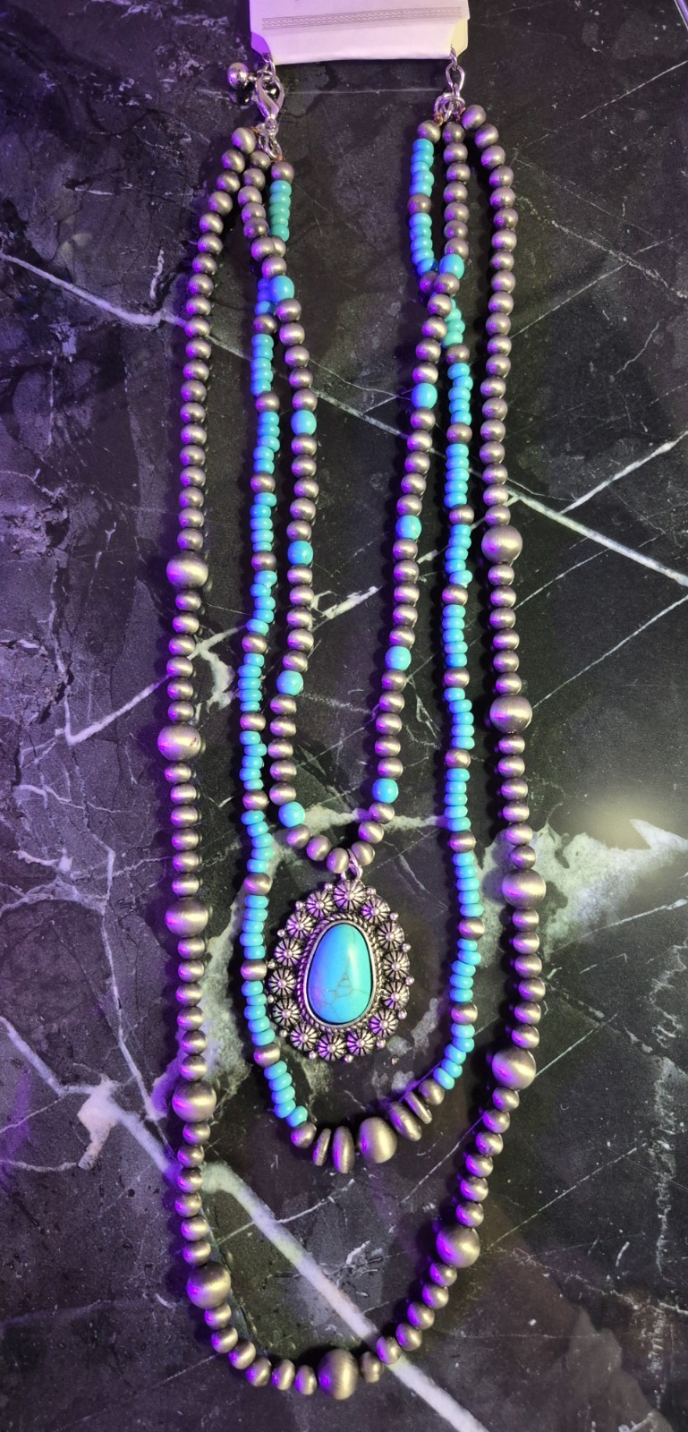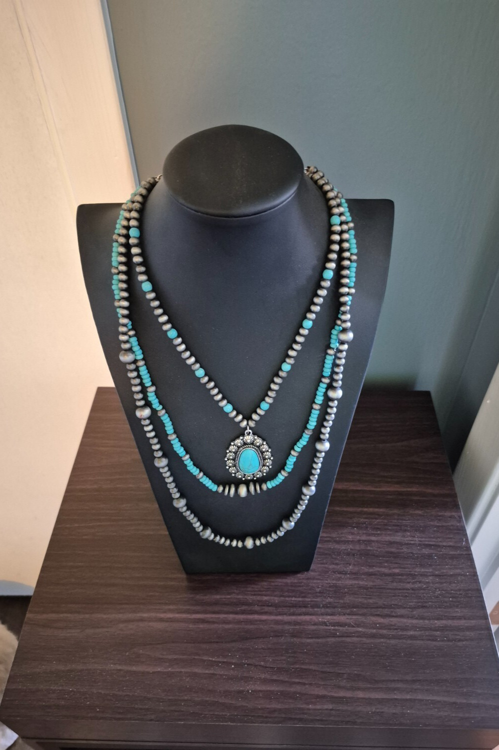 faux turquoise statement necklaces 3 strands