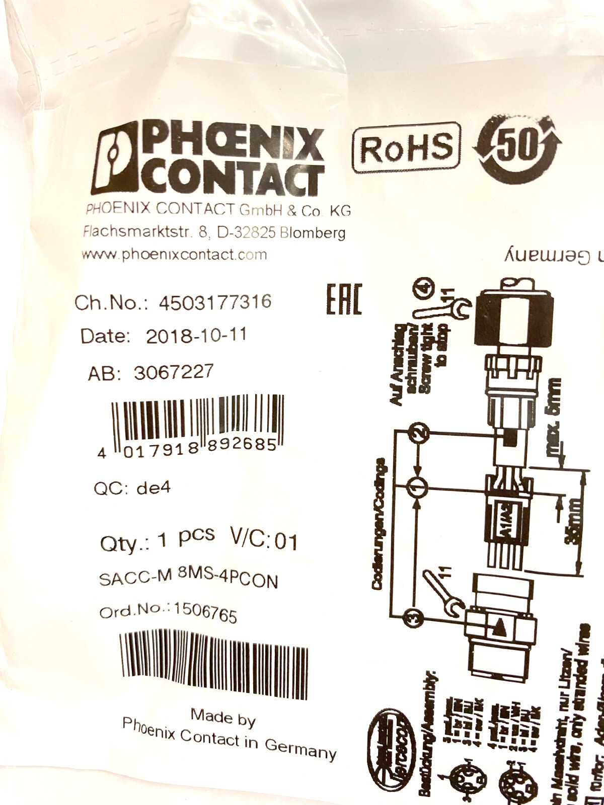 как выглядит Phoenix Contact Lot of 2 Connector SACC-M8FS-4PCON, SACC-M8MS-4PCON New фото