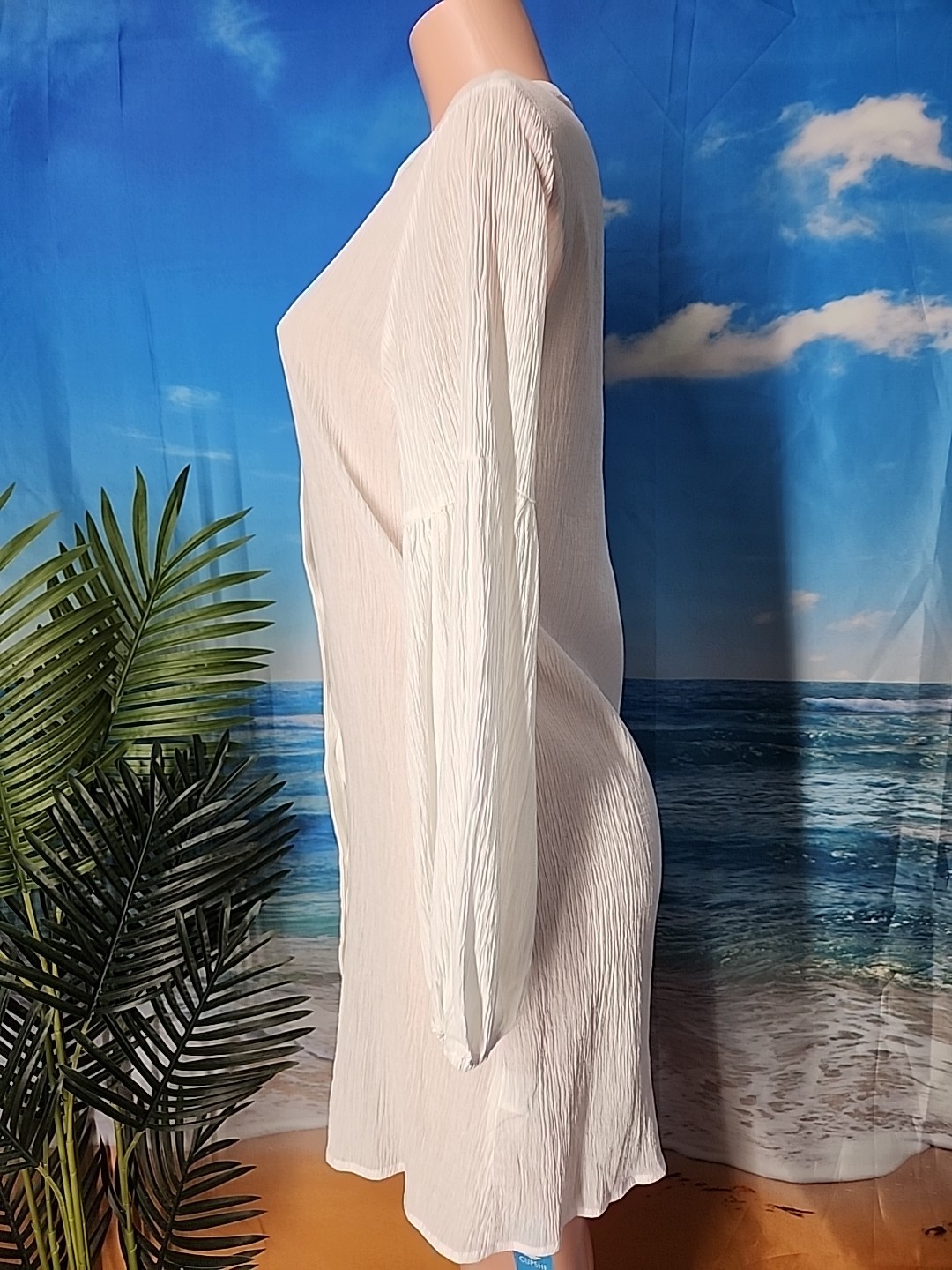 NWT Cupshe Beach Swim Cover Up White Sheer Size Medium Long Sleeve