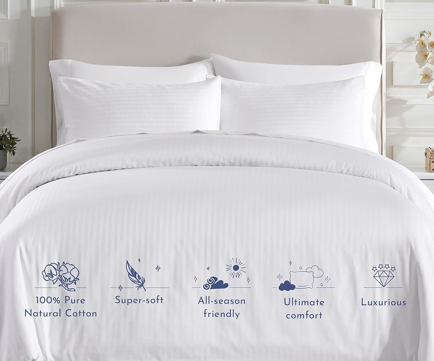 как выглядит King Size Duvet Cover Set, Premium 400 Thread Count 100 Cotton Sateen, Hotel Qu фото