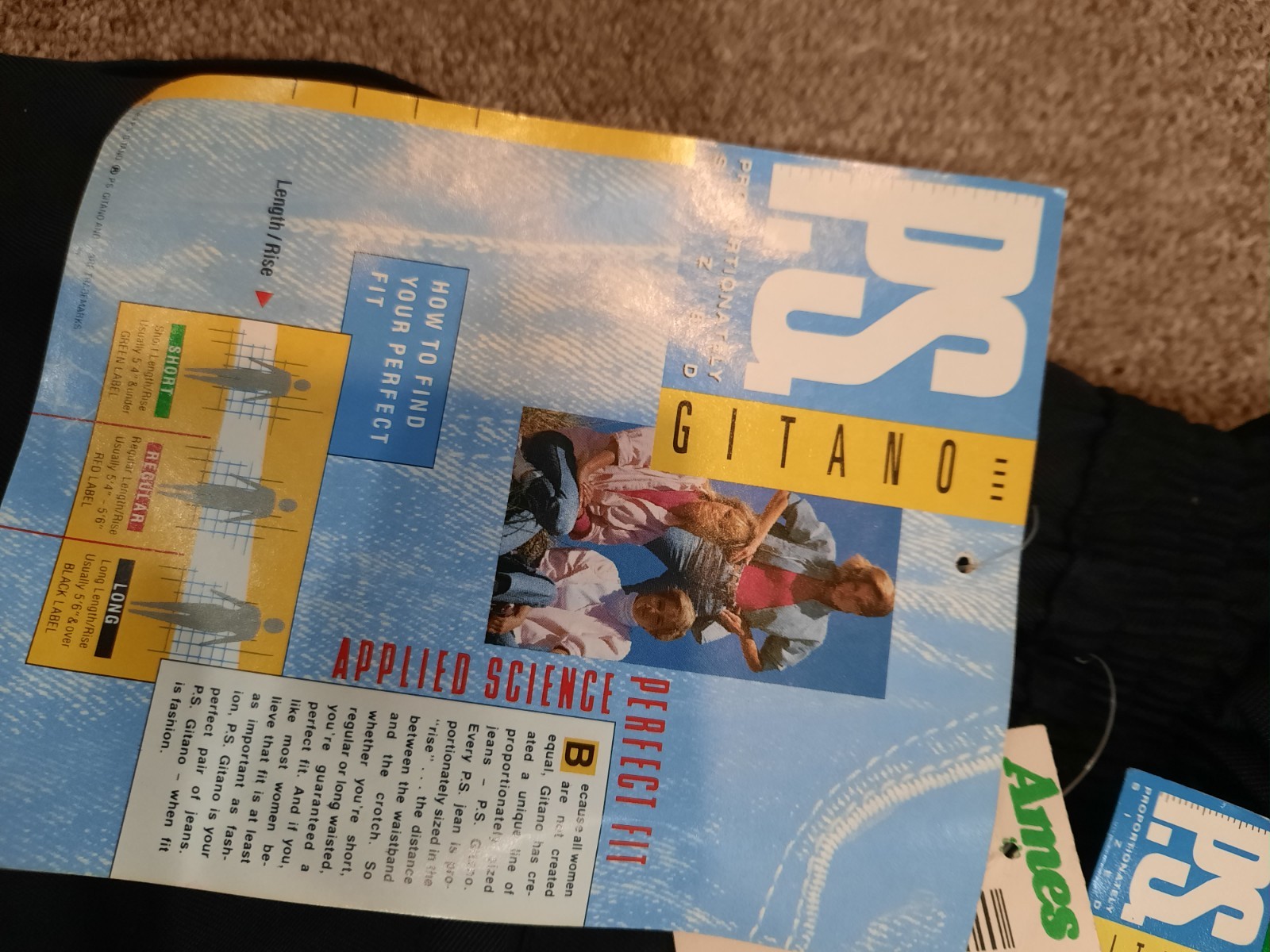 New Vintage P.S. Gitano Black Pants Elastic Waist Size 12 Short Inseam 28 .