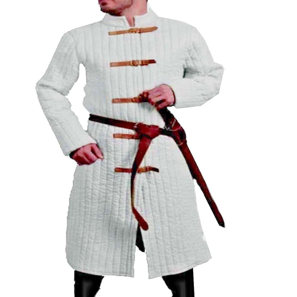 Medieval Gambeson Coat Jacket Padded Armor Aketon LARP Cosplay white Leather Tr