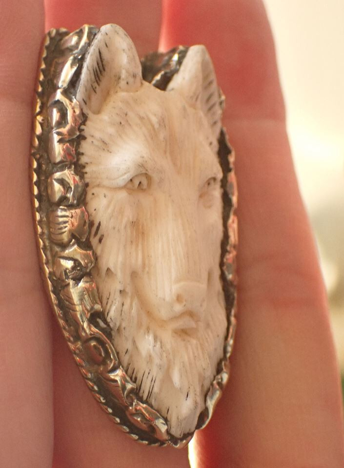 как выглядит Wolf Coyote Dog Head adjustable Ring фото