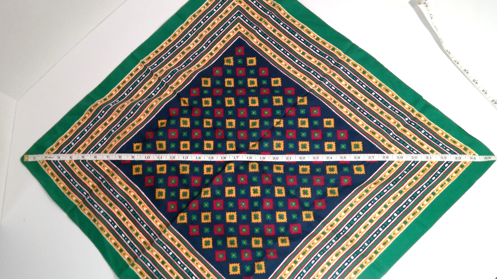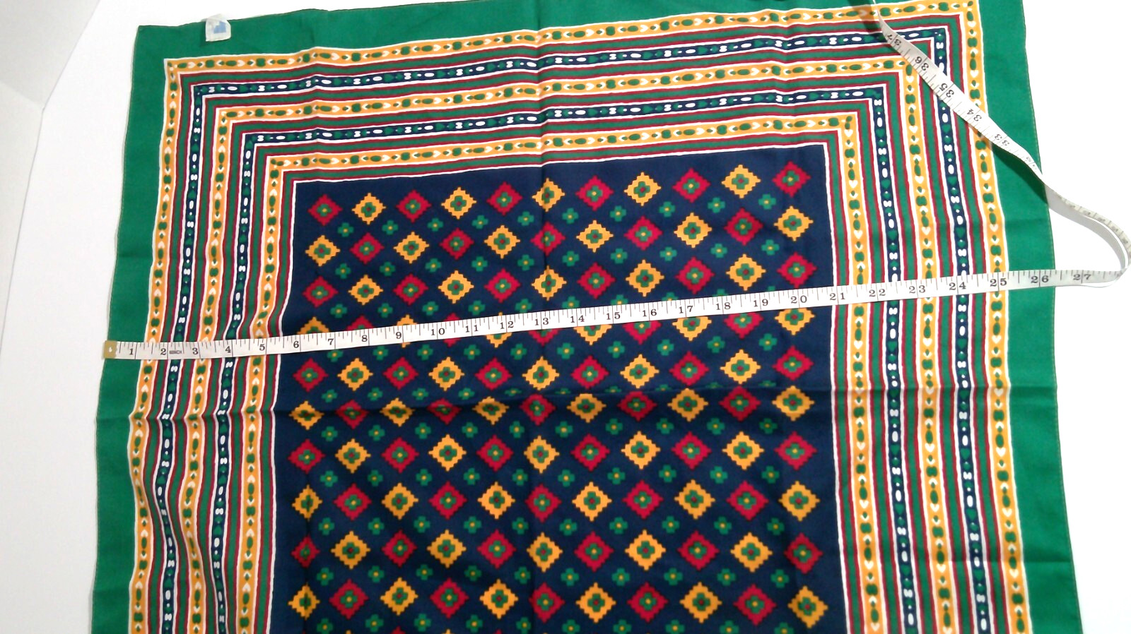 как выглядит Vintage Italian Scarf, Geometric Pattern, Green Yellow Navy Blue Red 25"x26" фото