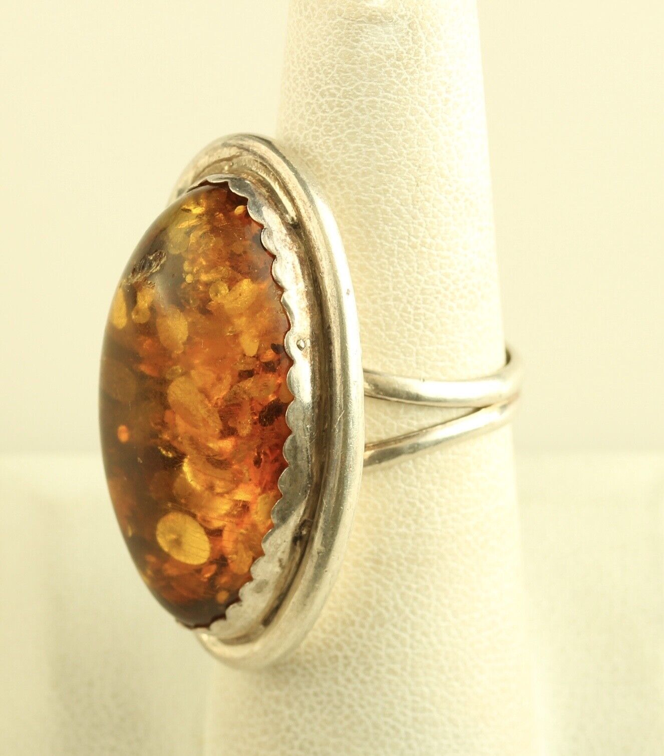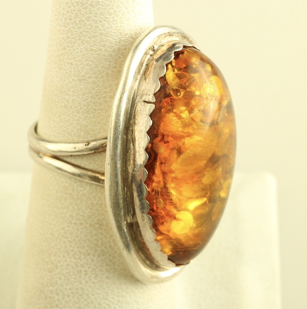 как выглядит Vintage sterling silver 925 elongated oval amber ring фото