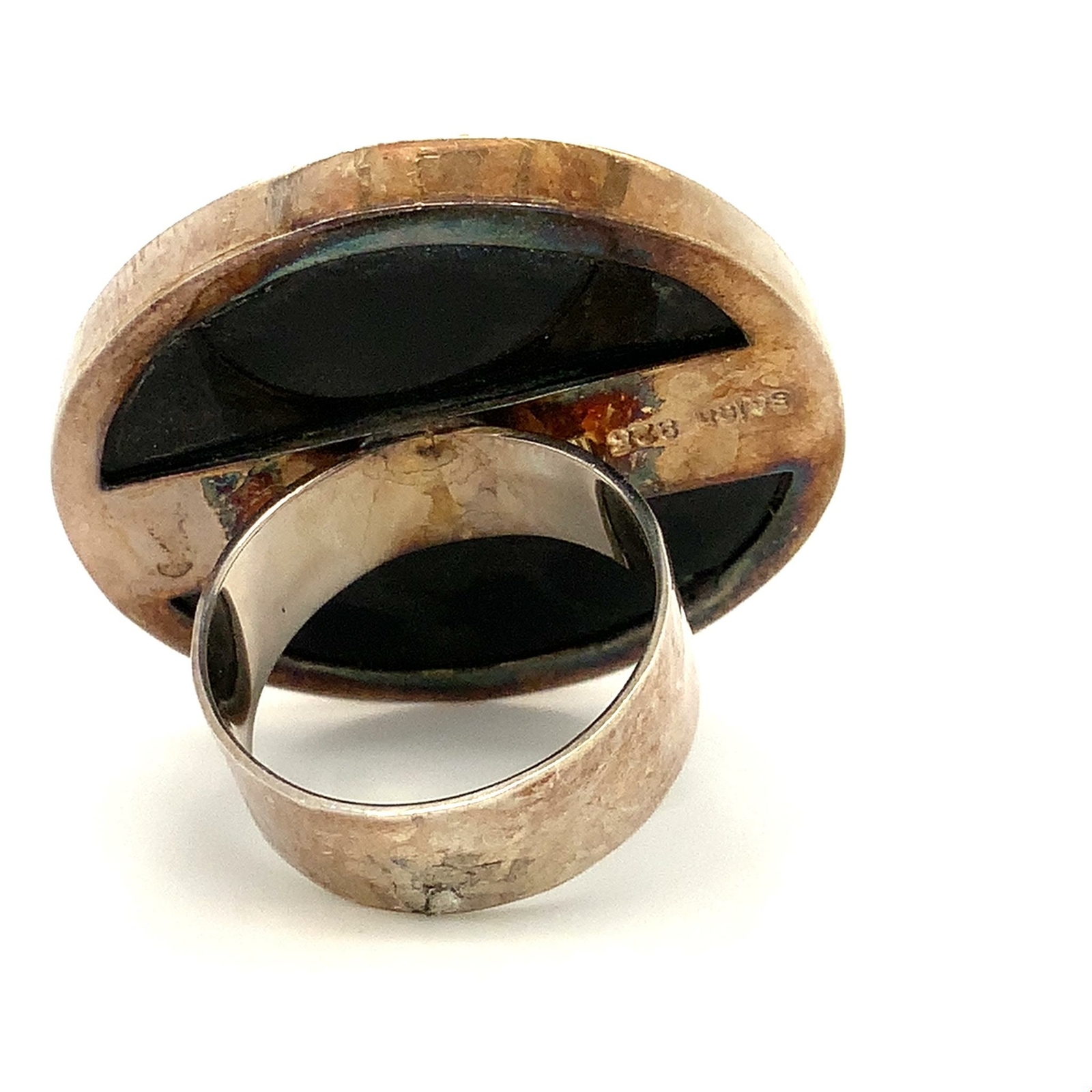Vintage Sterling Signed 925 Rare Abalone Shell Shadow Swirl Designer Ring size 8
