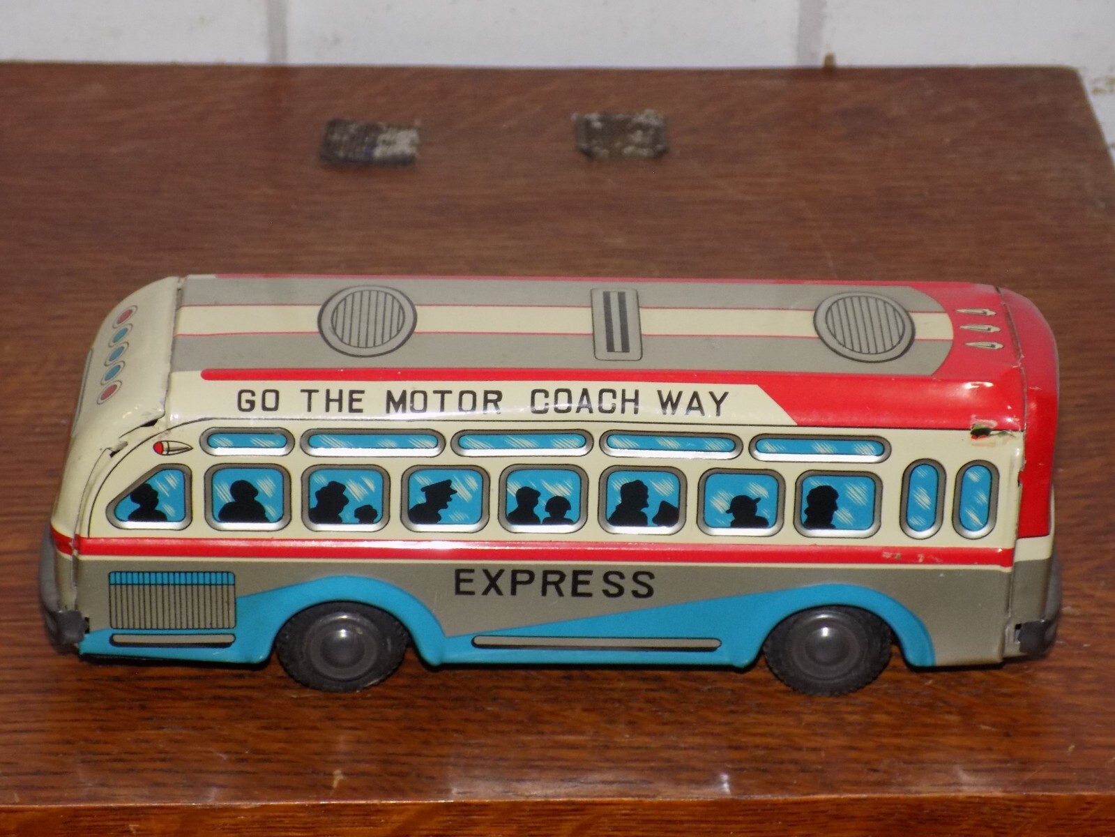 Vintage Go The Motor Coach Way Express Tin Friction Toy Japan Bus