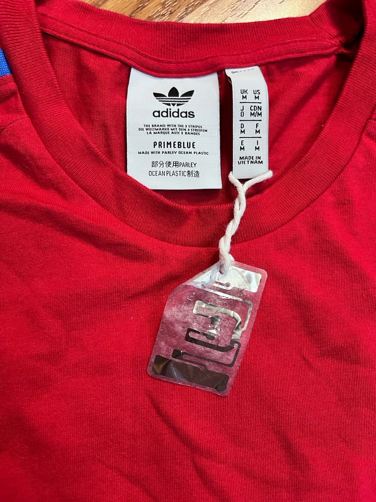 как выглядит Adidas Originals Mens 3 Stripe Tee Red Medium фото