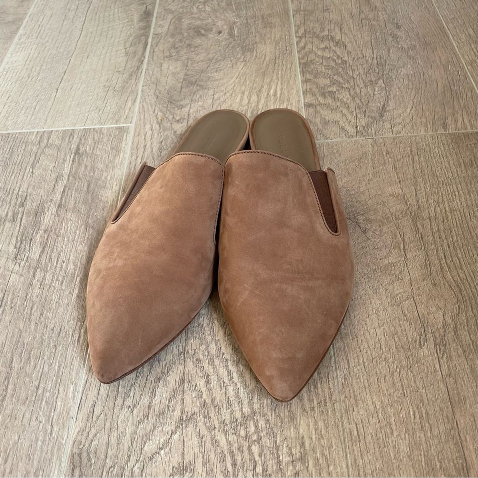 как выглядит Jenni Kayne Suede Mules Pointed Toe Flat Shoes Saddle Brown Size 38 US 7 фото