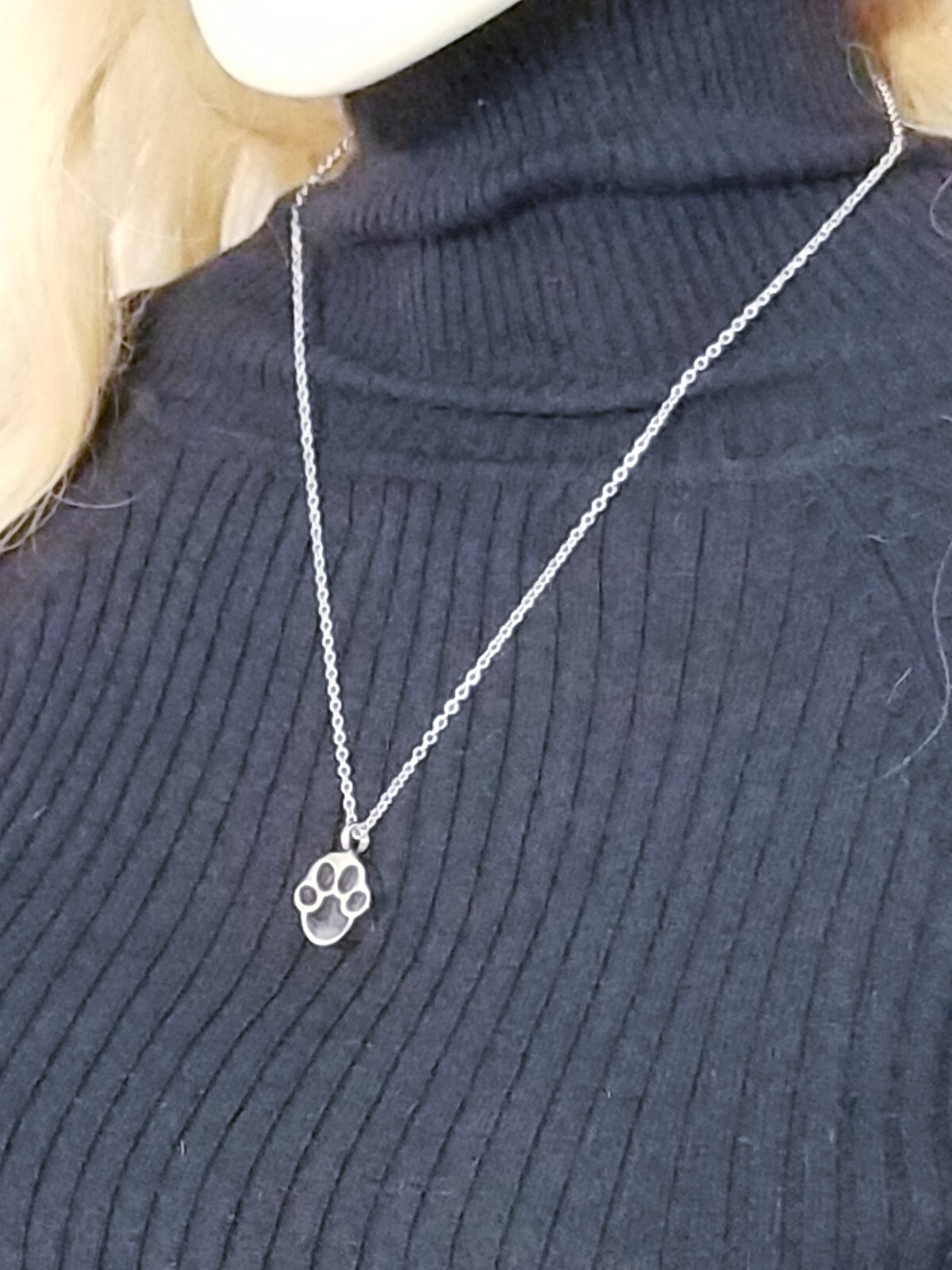 Silver Tone Pet Urn Cremation Memorial Necklace Paw Print