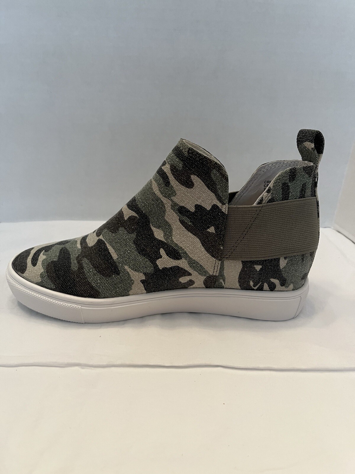 Steve Madden Womens 7M Crushin Hidden Wedge Green Camo High Top Slip On Sneakers