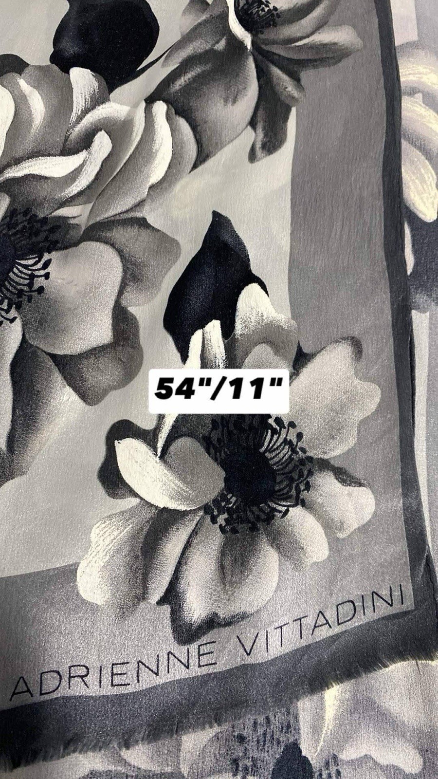 Adrienne Vittadini All Gray Silk Flowers Pattern Women s Scarf In PEC