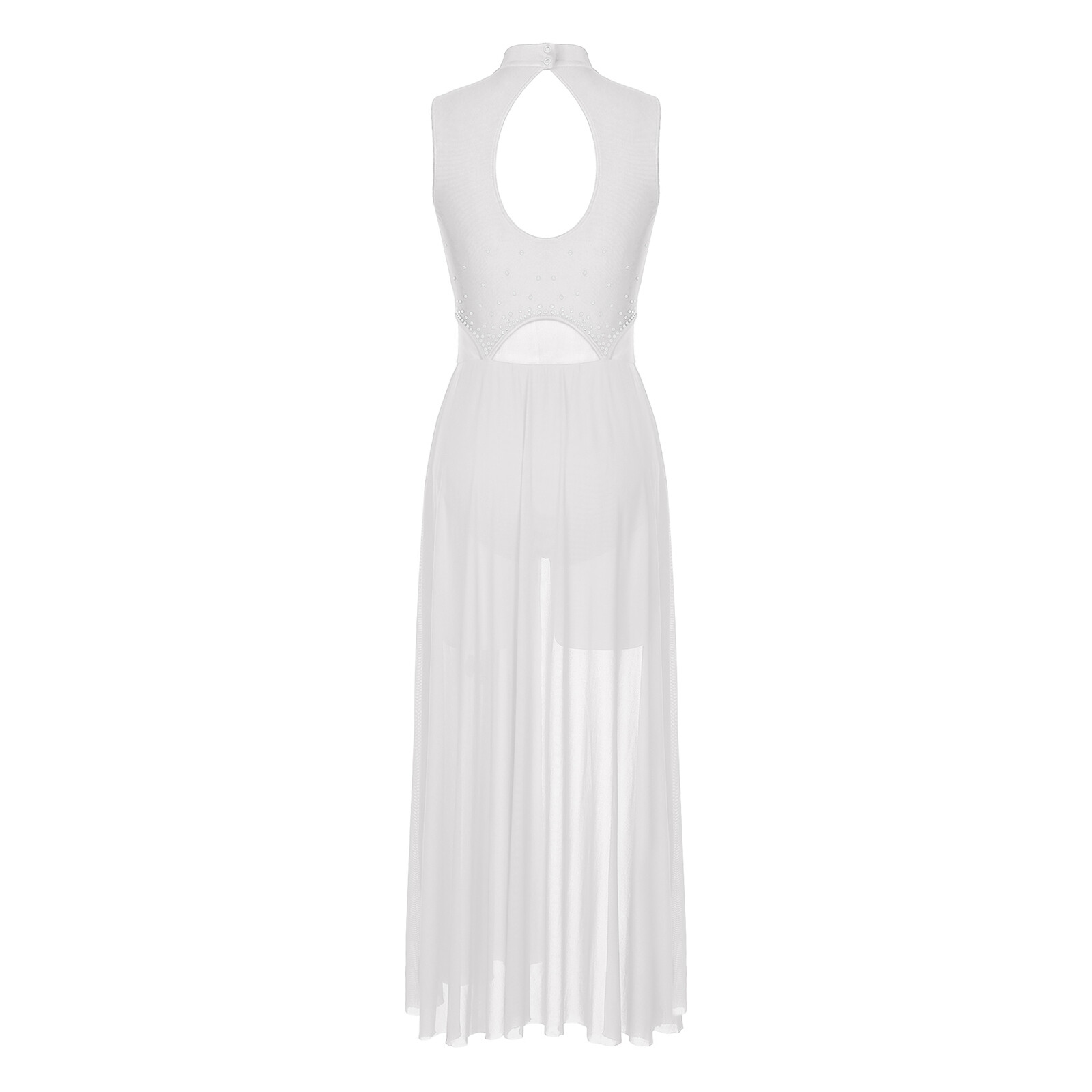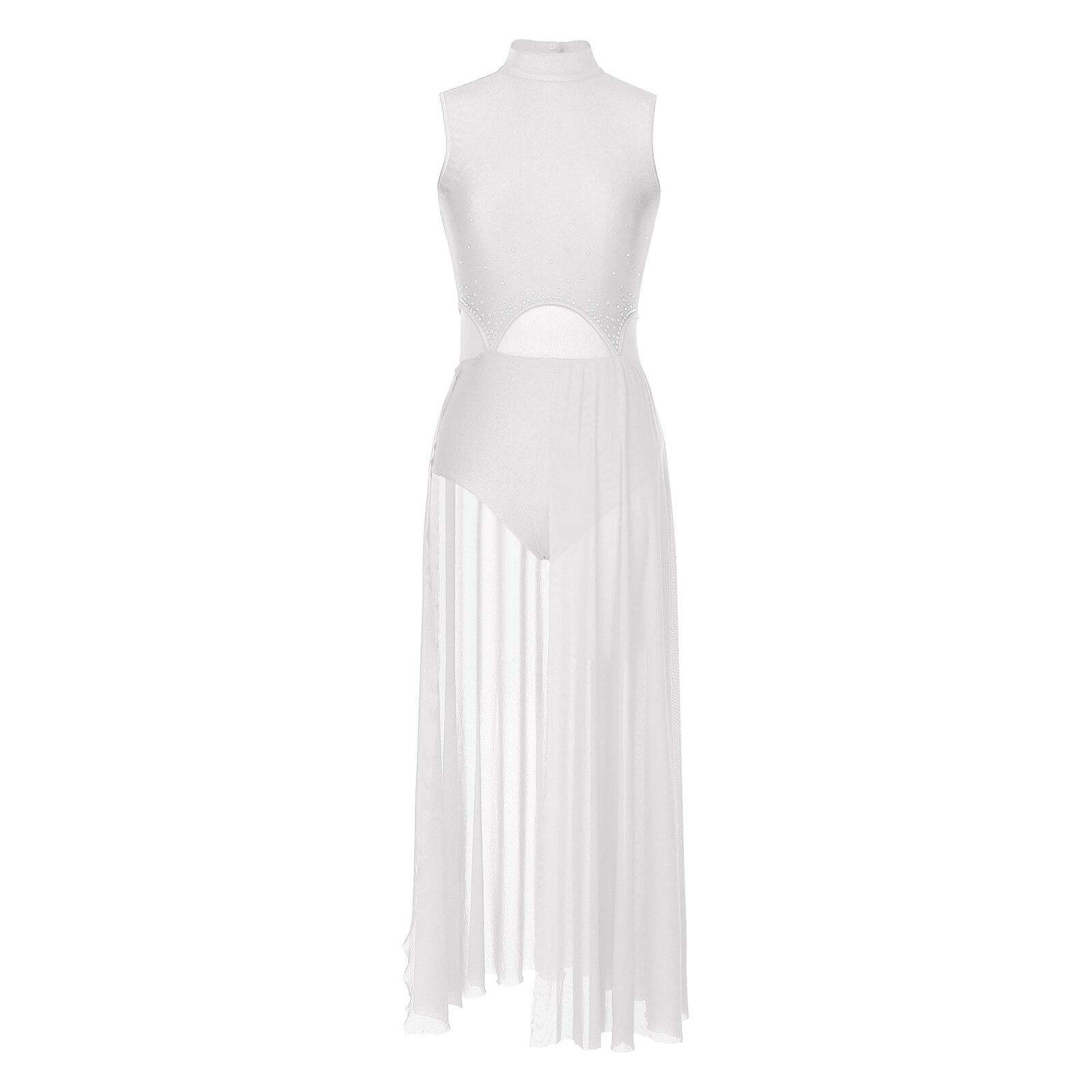 Womens Leotard Dance Dress Flowy Rhinestone Party Costume Keyhole Back Lyrical