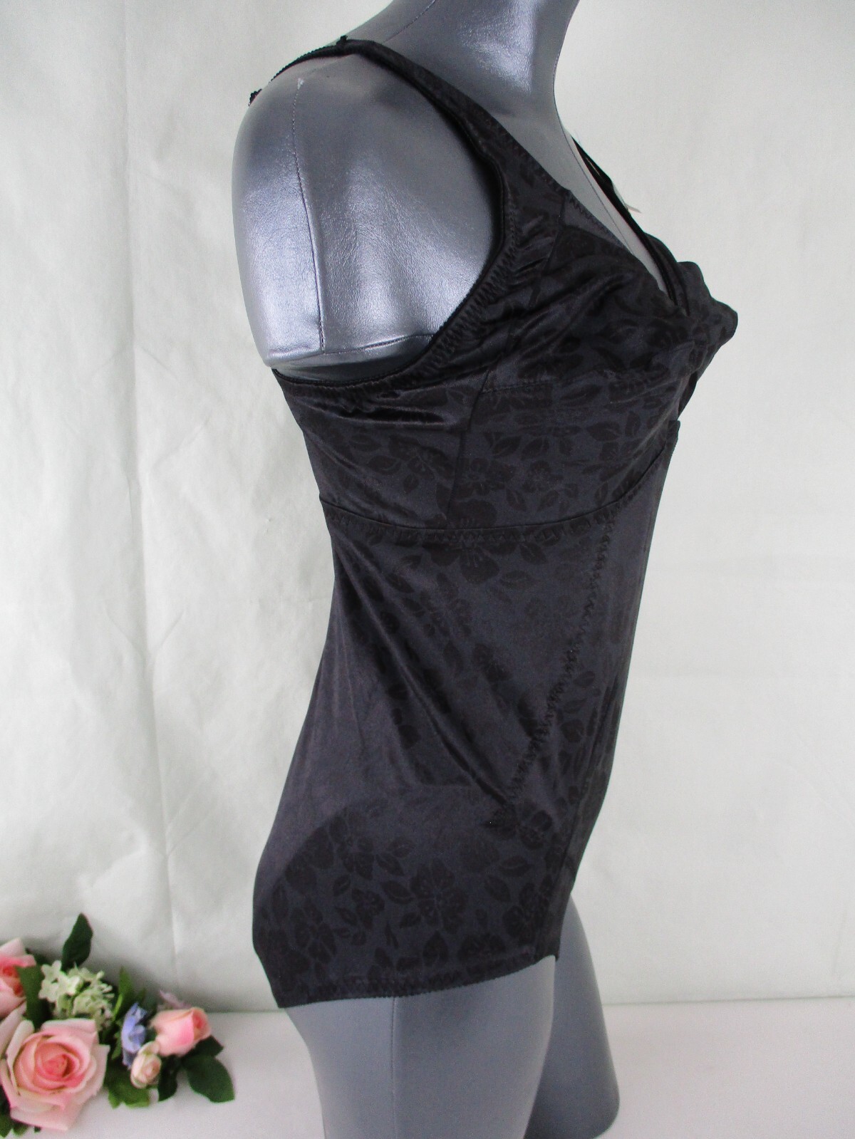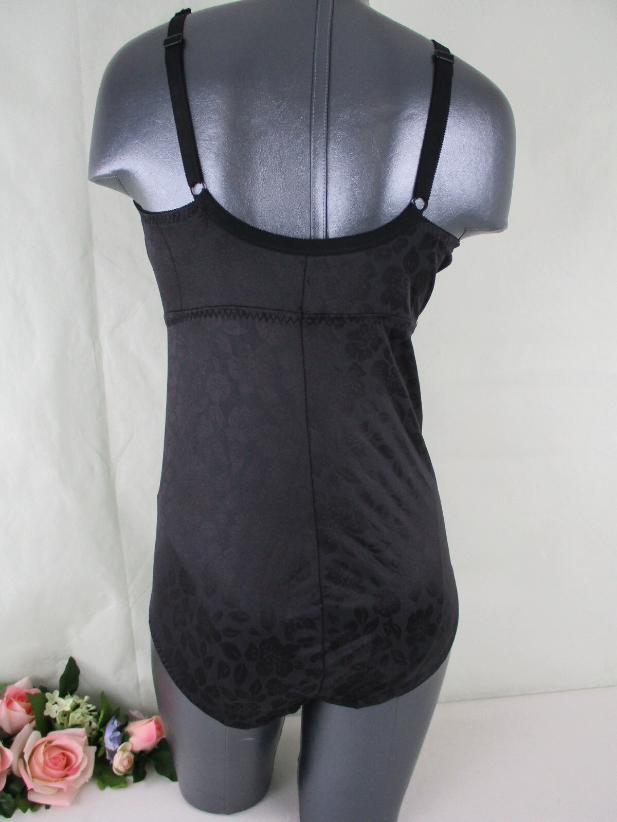 Vintage SEARS Black Floral Satin Bodysuit Tummy Control Girdle size 42D NWT