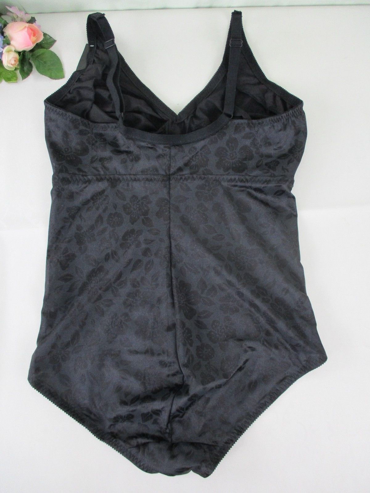 как выглядит Vintage SEARS Black Floral Satin Bodysuit Tummy Control Girdle size 42D NWT фото