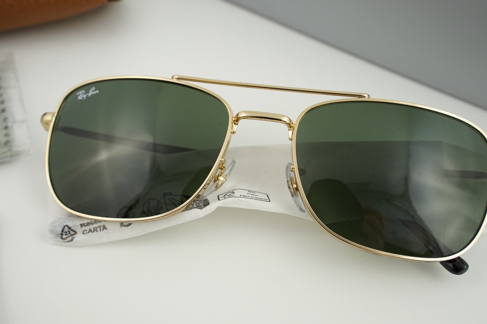 как выглядит NIB Ray-Ban RB 3755 001/31 Arista Gold/Green 59-19-145 3N Aviator w/Case фото