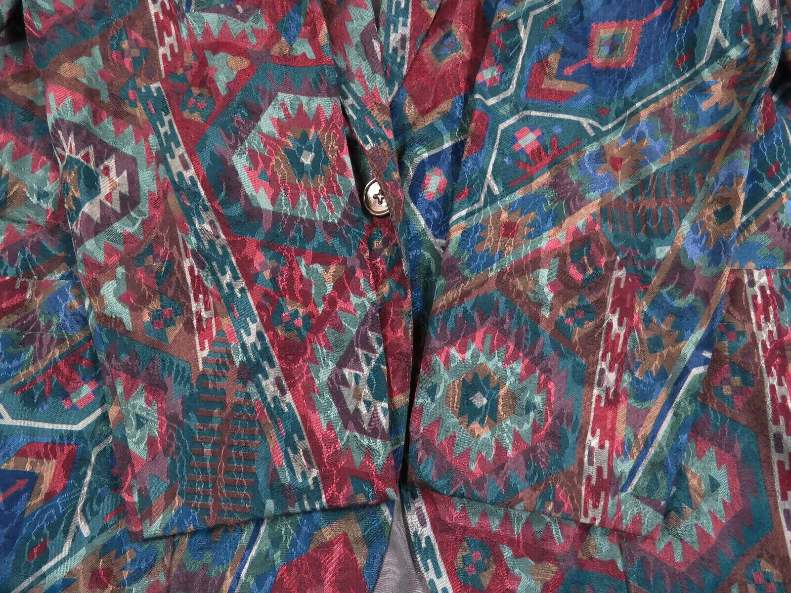 как выглядит Vintage Southwestern Aztec Geometric Abstract One Button Jacket M фото