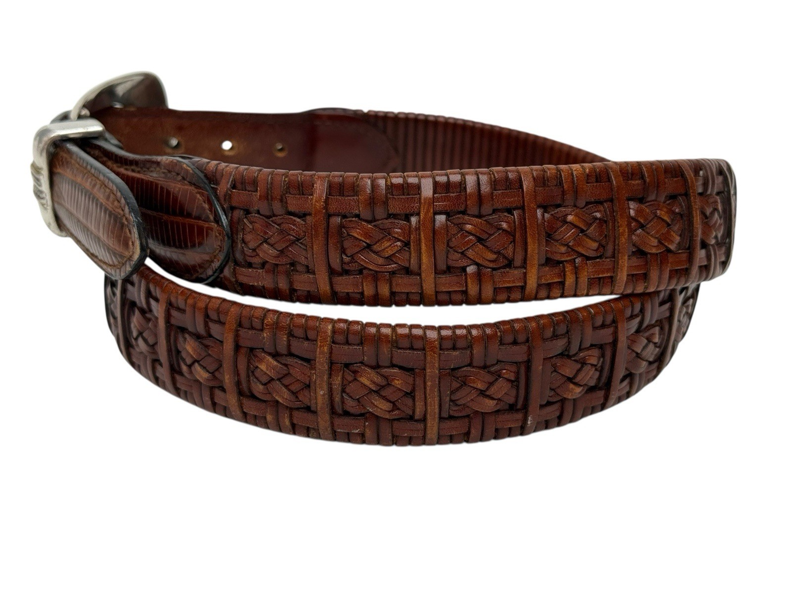 как выглядит Vintage 90s Brighton Basketweave Brown Leather Belt Silver Buckle Men s Size 40 фото